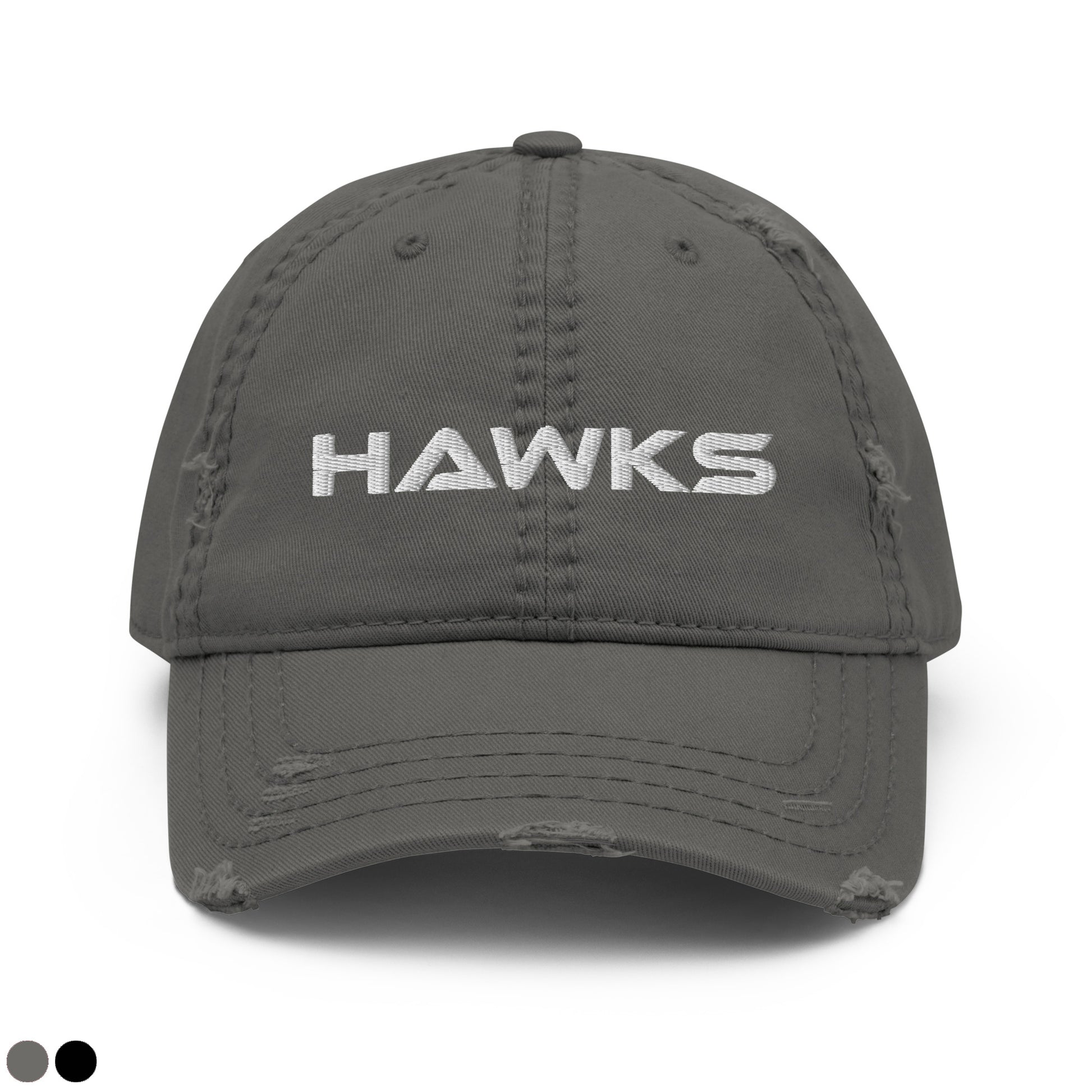 Select from several colors in this adult unisex dad hat featuring the embroidered Hawks logo on the front. With a slightly distressed brim and crown fabric, it’ll add just the right amount of edge to your look. This hat is perfect to wear watching any game.