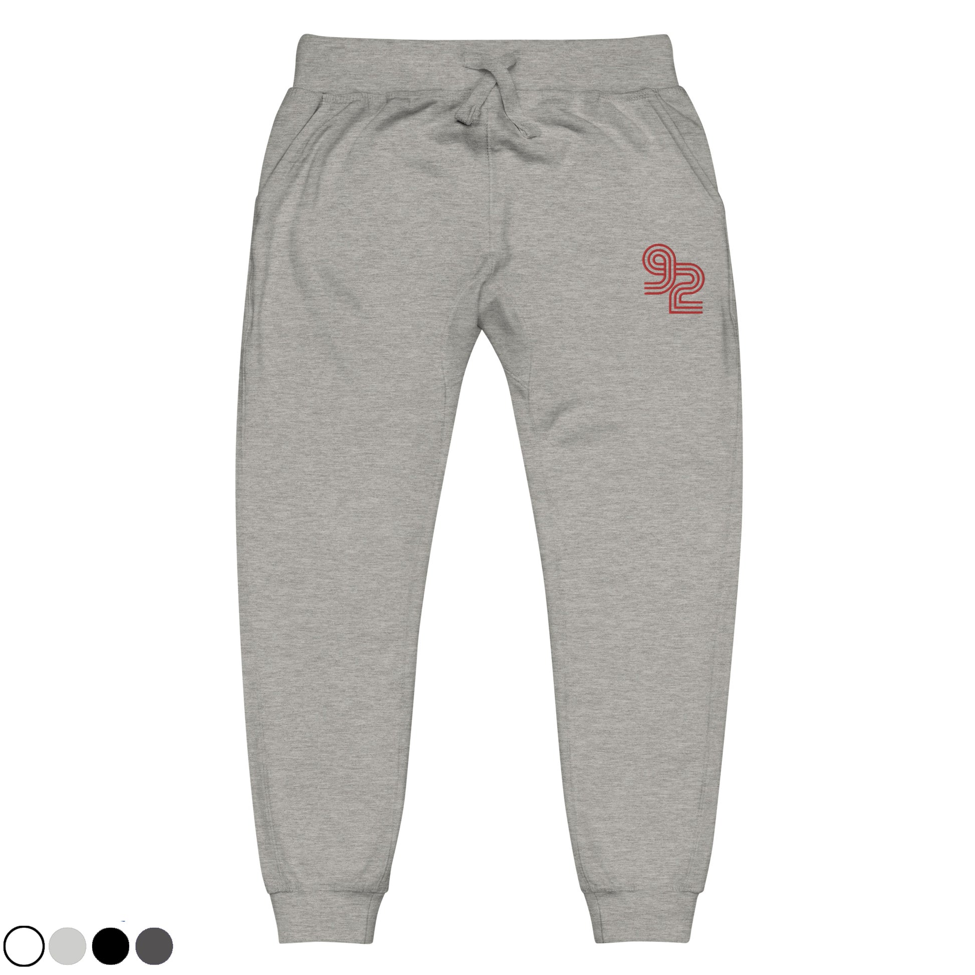 Check out our matching hoodie (Adult Hoodie - Embroidered 92) to purchase a matching set! Select from a variety of colors in this adult unisex jogger featuring the embroidered 92 design. Get ready for the big game or take it slow in your backyard—these joggers are sure to make you feel comfortable either way.