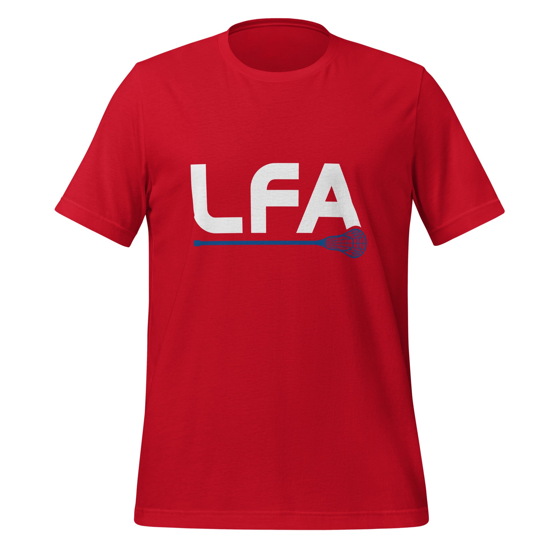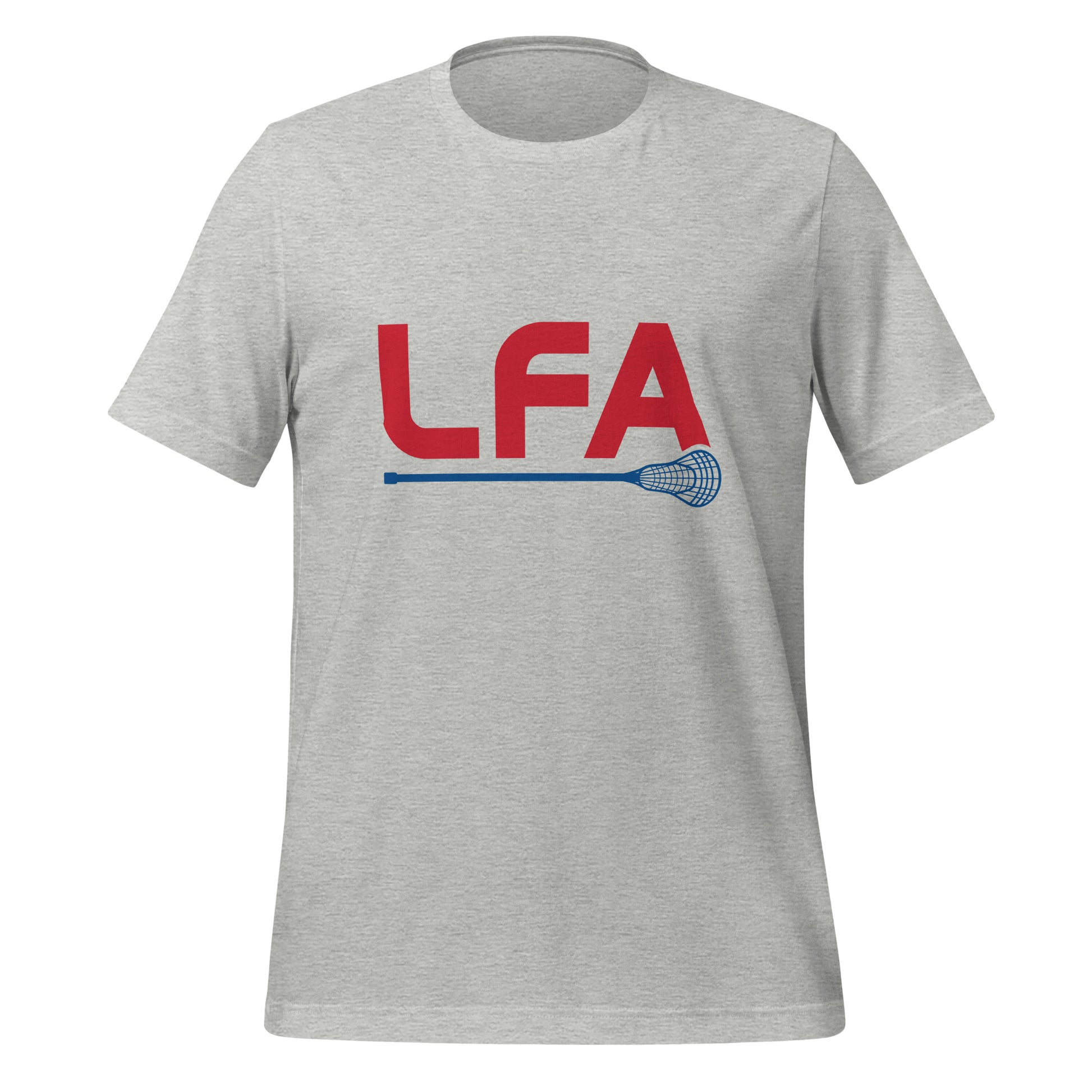 Select from a variety of colors in this adult unisex t-shirt featuring a LFA lacrosse stick design. This t-shirt is everything you've dreamed of and more...soft and lightweight, with the right amount of stretch. It's comfortable and flattering for all.