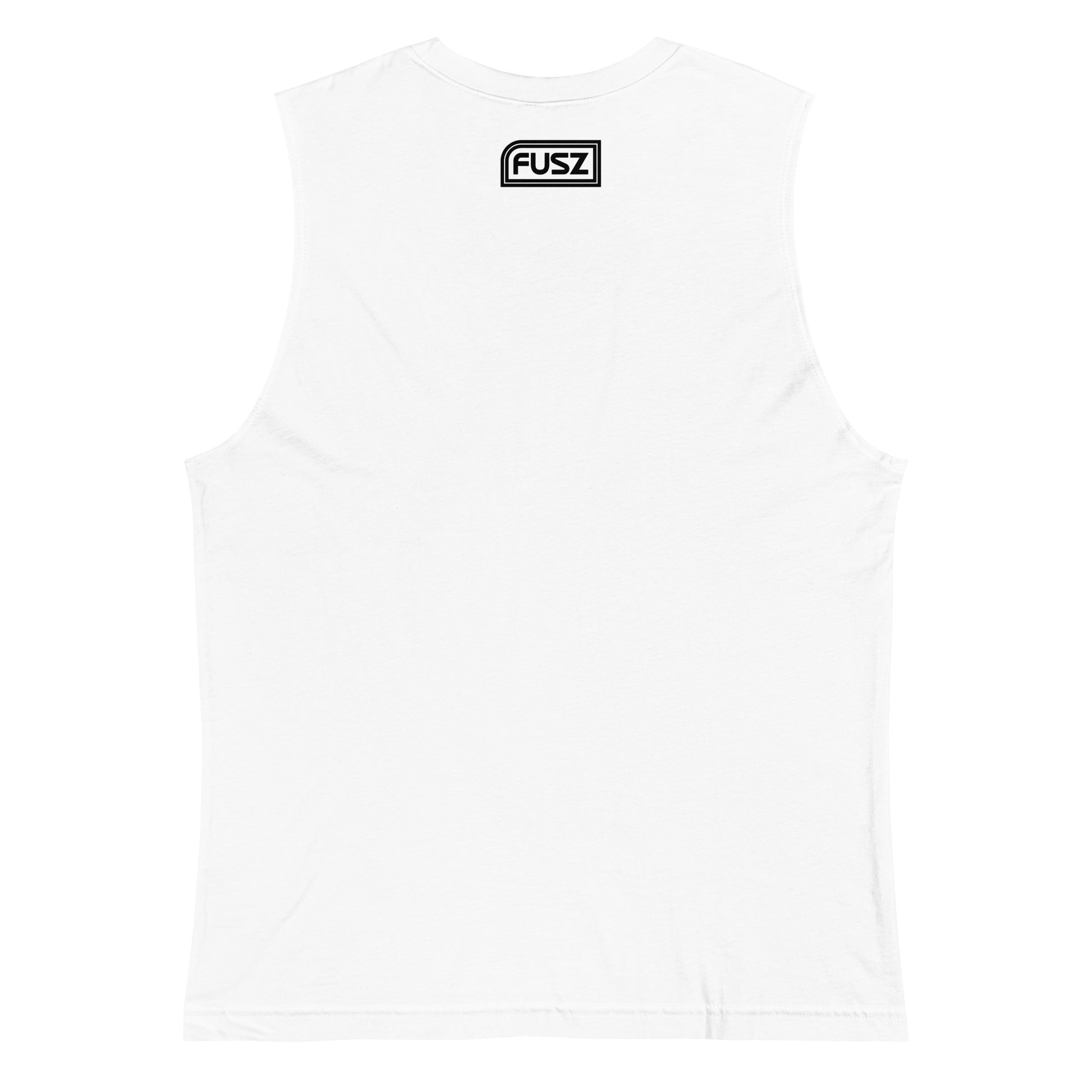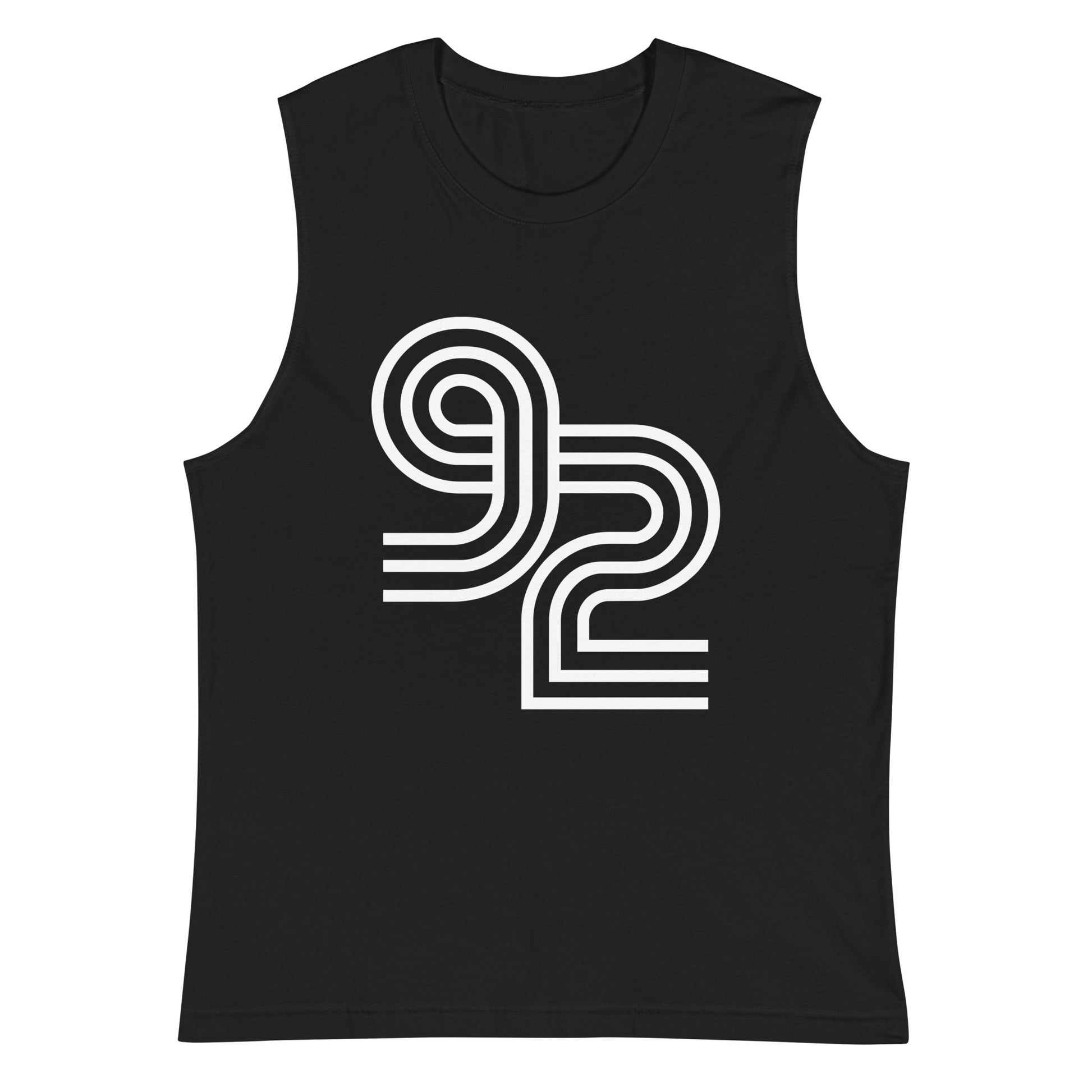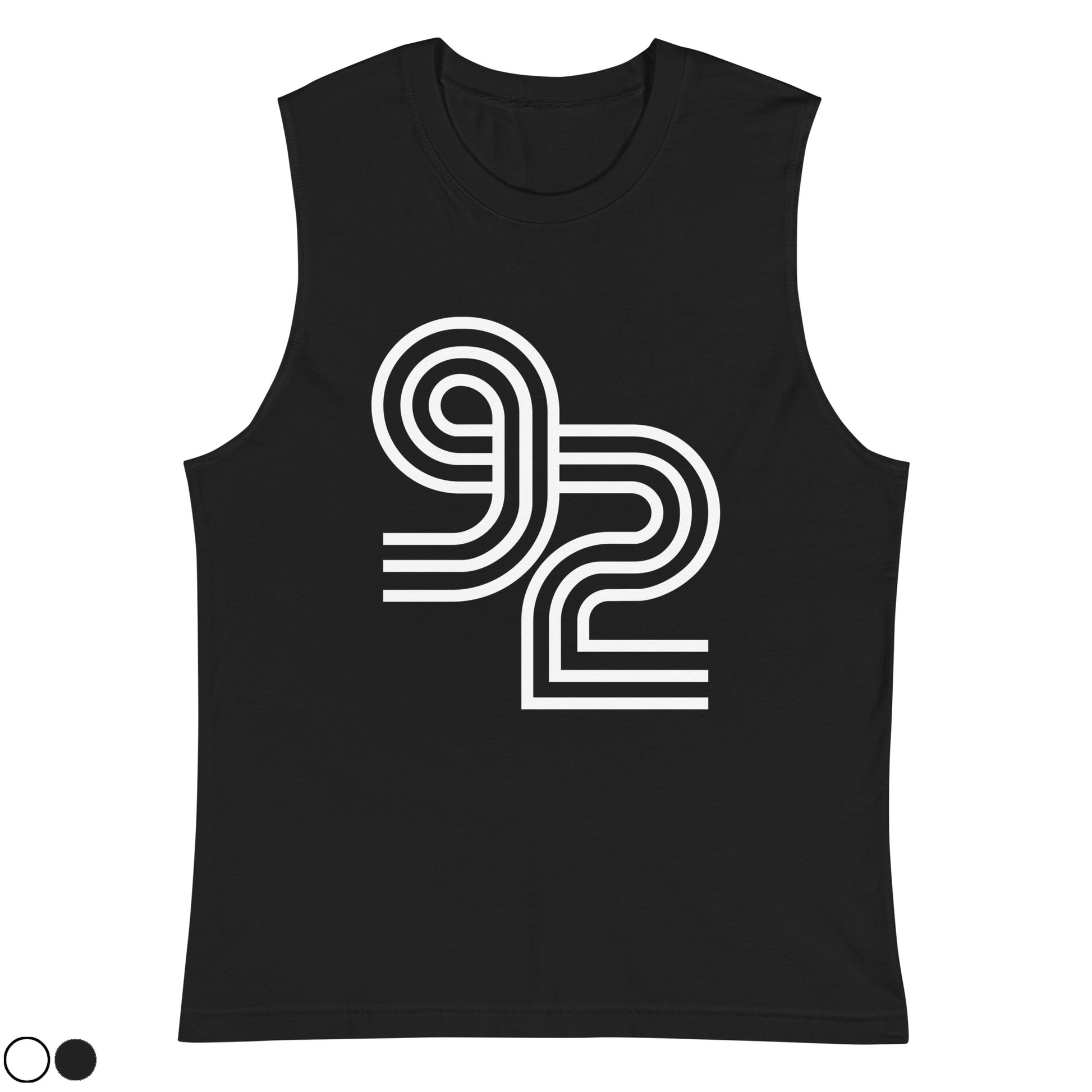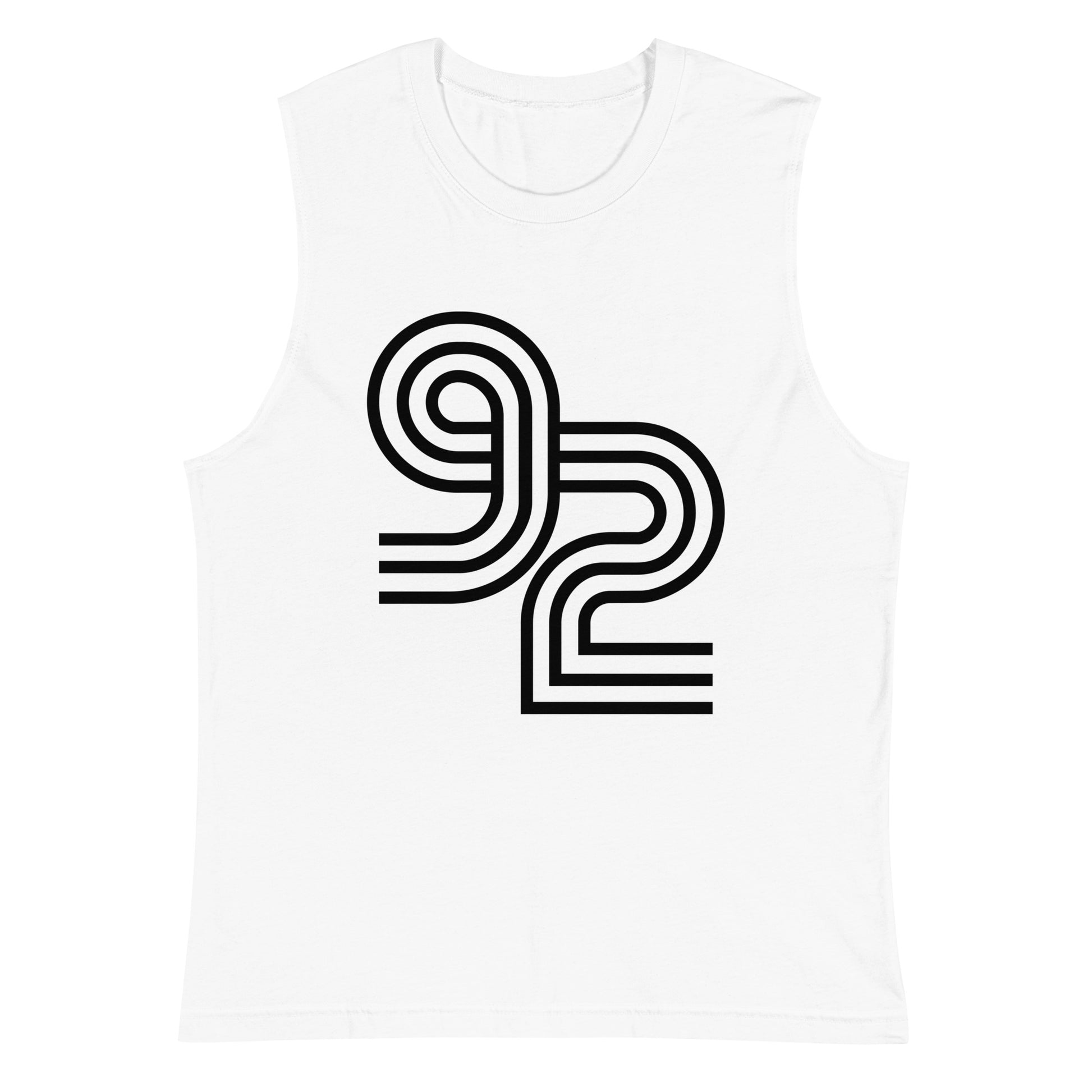 Select black or white in this adult unisex muscle tank featuring the printed 92 logo on the front and small Fusz Sticker logo on the back. This soft, sleeveless tank is so comfy you're going to want to wear it everywhere. The relaxed fit and low-cut armholes gives it a casual, urban look.