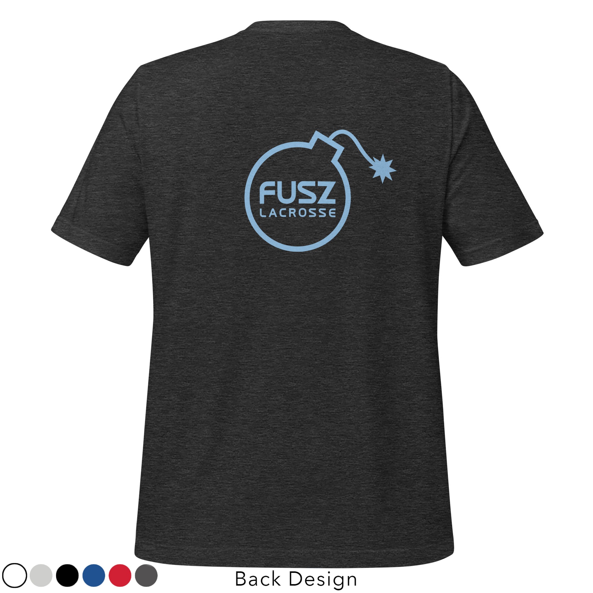 Select from a variety of colors in this adult unisex t-shirt featuring the Fusz Lacrosse logo on the front with the Fusz Lacrosse Bomb graphic on the back. This t-shirt is everything you've dreamed of and more...soft and lightweight, with the right amount of stretch. It's comfortable and flattering for all.