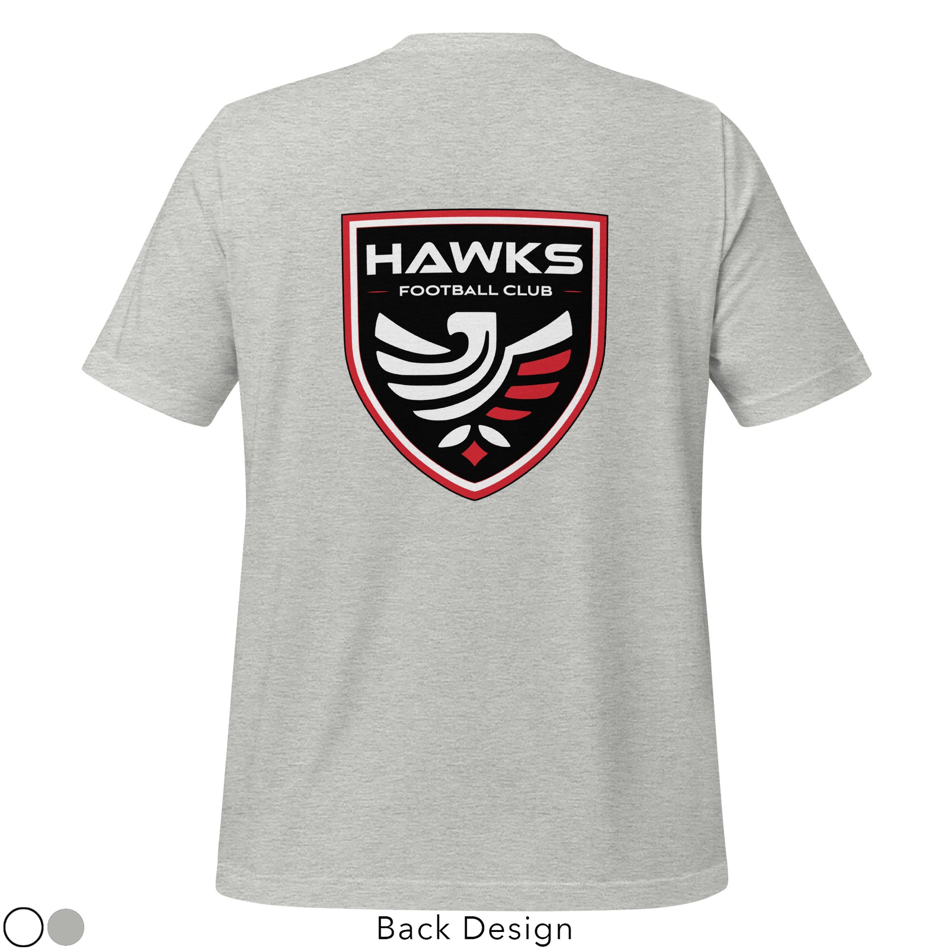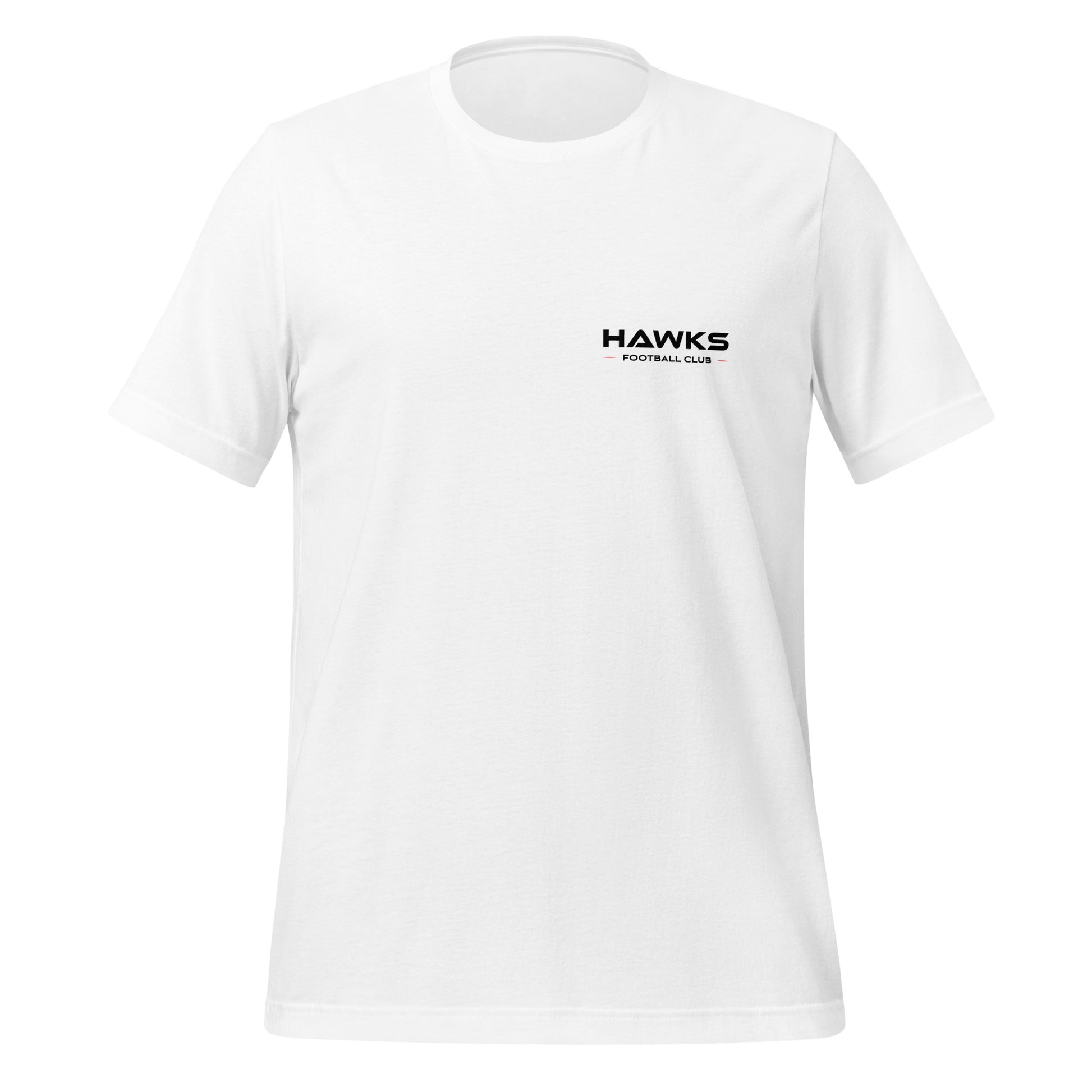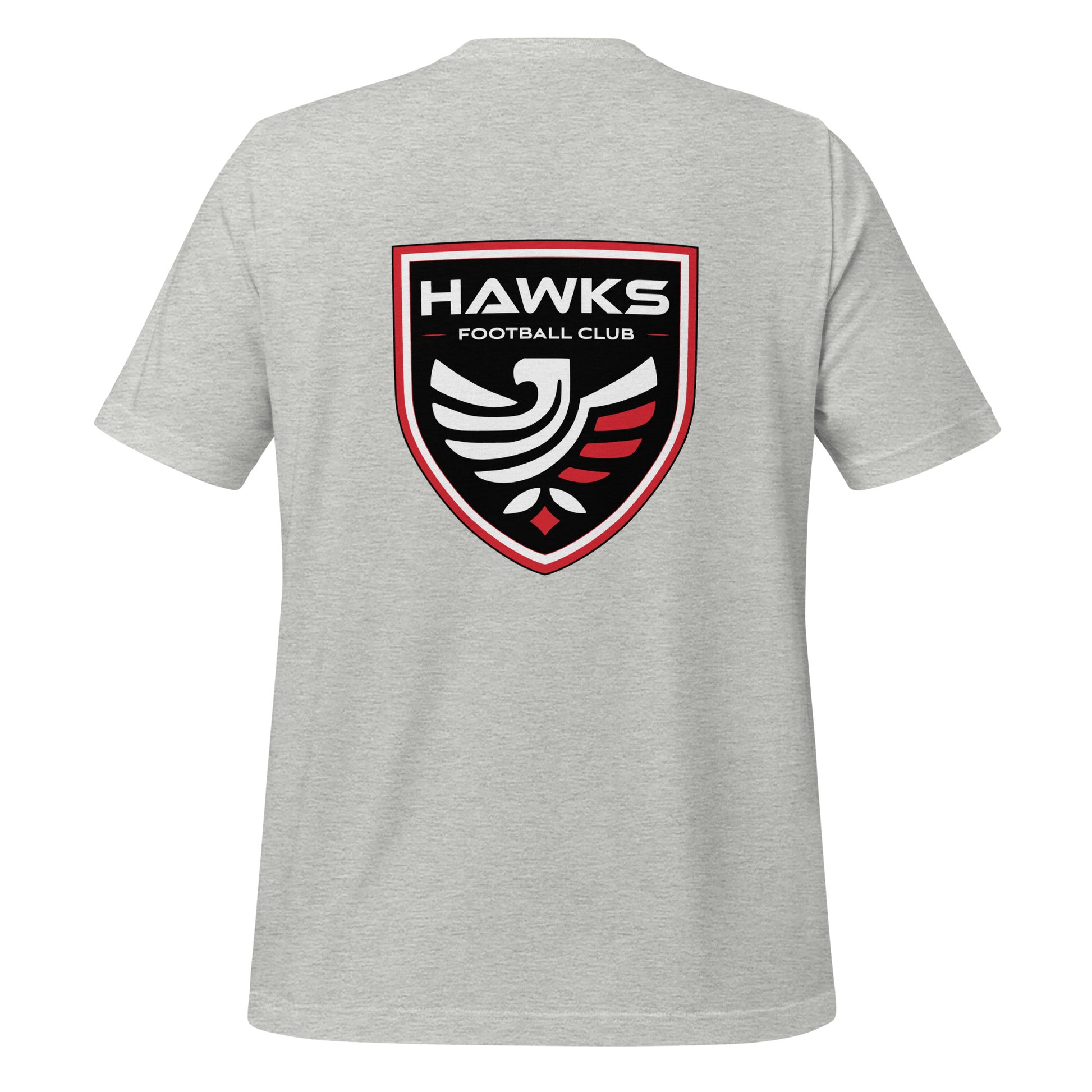 Select from several colors in this adult unisex t-shirt featuring the Hawks wordmark logo small on the front and Hawks shield graphic on the back of the shirt. This t-shirt is everything you've dreamed of and more...soft and lightweight, with the right amount of stretch. It's comfortable and flattering for all.