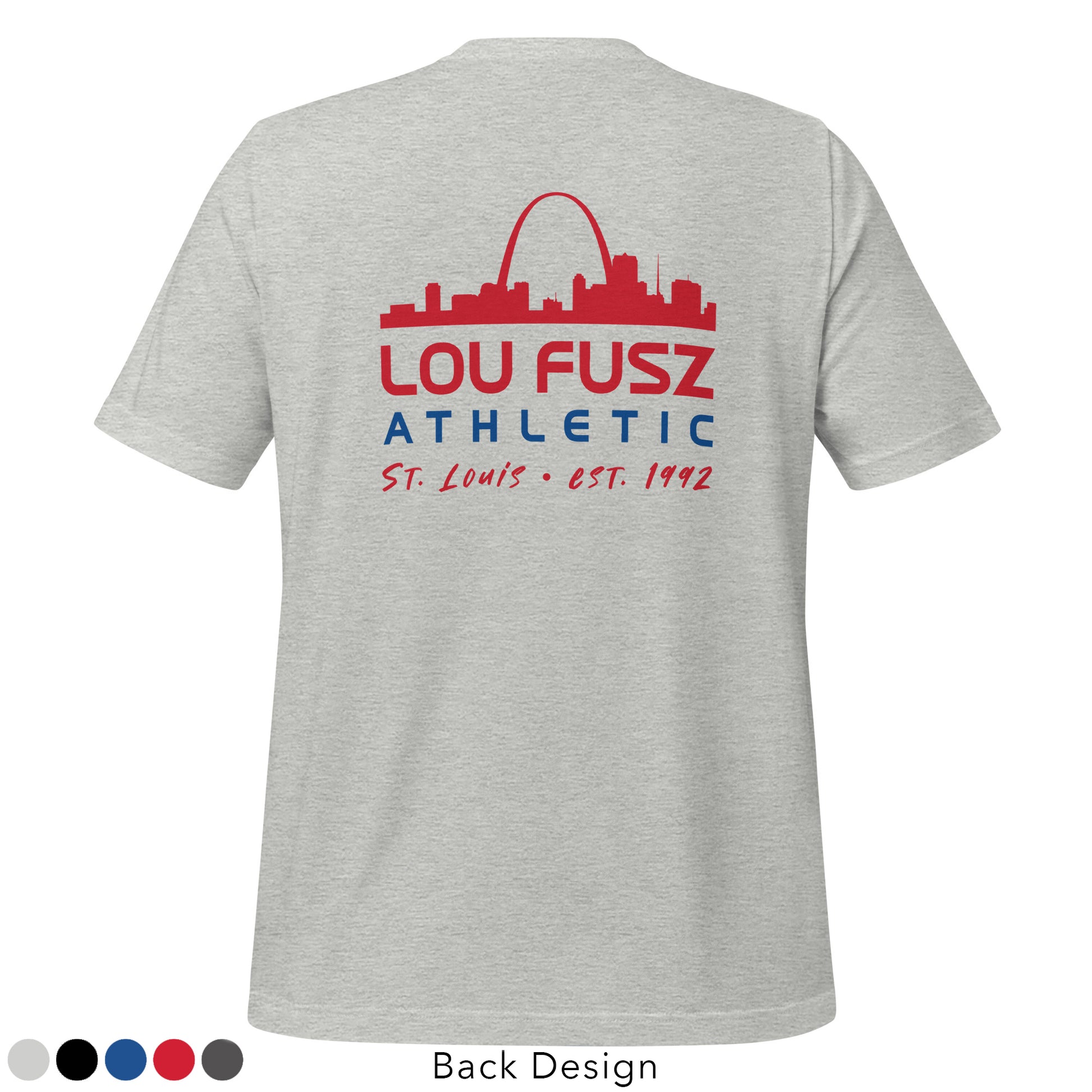 Select from a variety of colors in this adult unisex t-shirt featuring the Fusz Skyline graphic small on the front with the Lou Fusz Athletic Skyline larger graphic on the back. This t-shirt is everything you've dreamed of and more...soft and lightweight, with the right amount of stretch. It's comfortable and flattering for all.