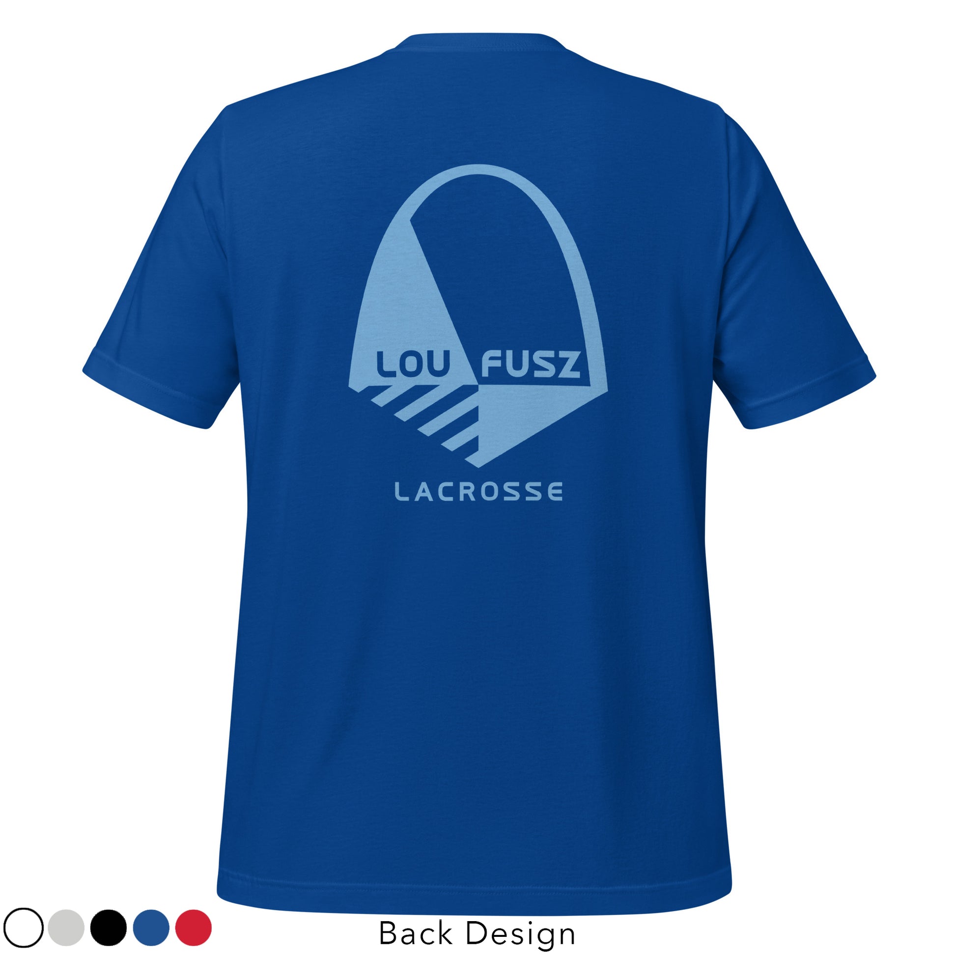 Select from a variety of colors in this adult unisex t-shirt featuring the Lou Fusz Lacrosse logo on the front with the Lou Fusz Lacrosse Crest on the back. This t-shirt is everything you've dreamed of and more...soft and lightweight, with the right amount of stretch. It's comfortable and flattering for all.