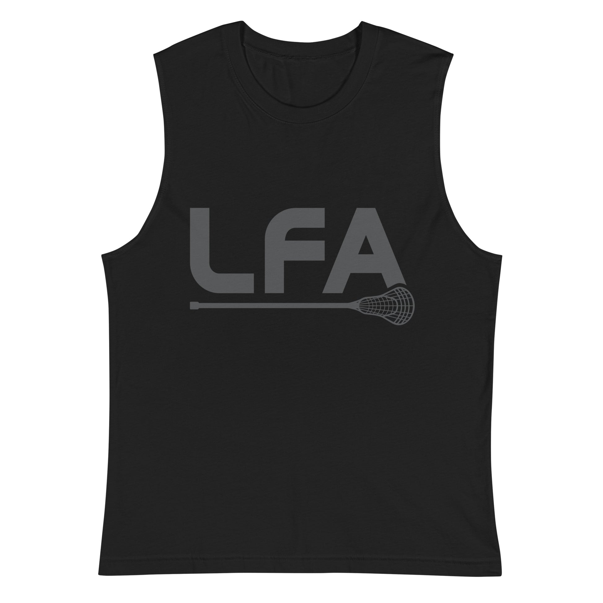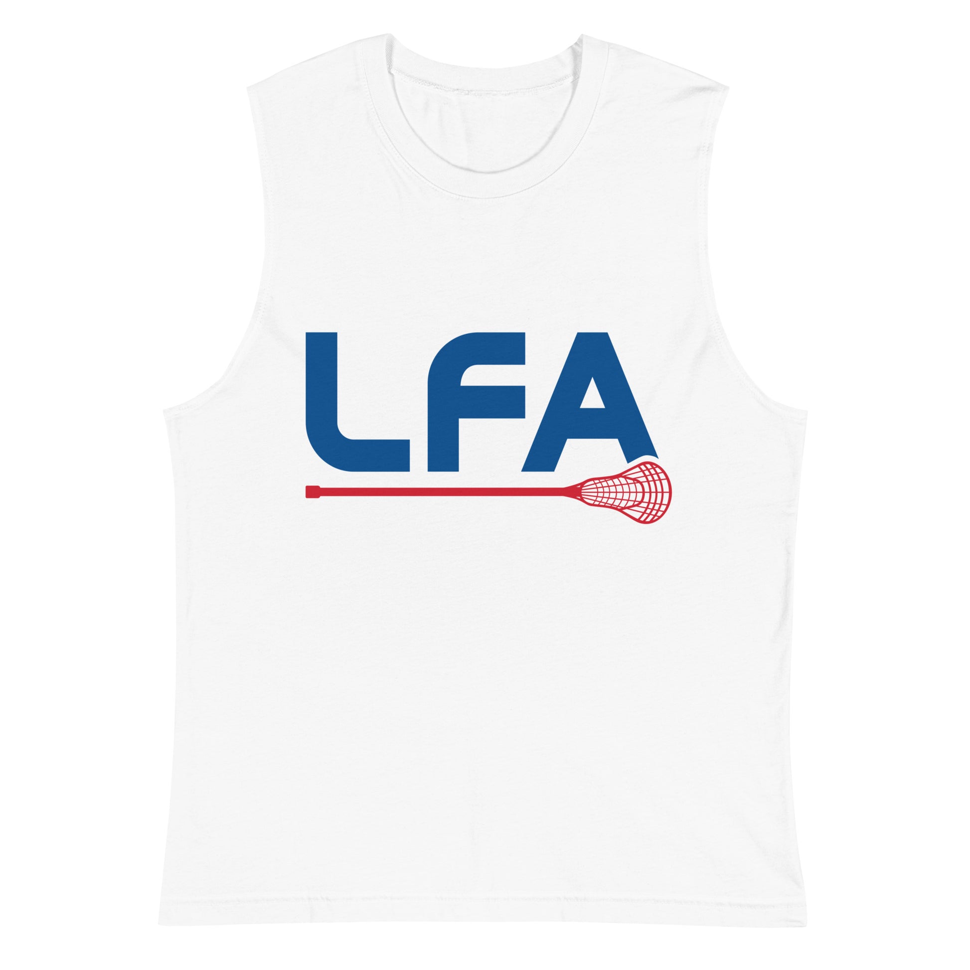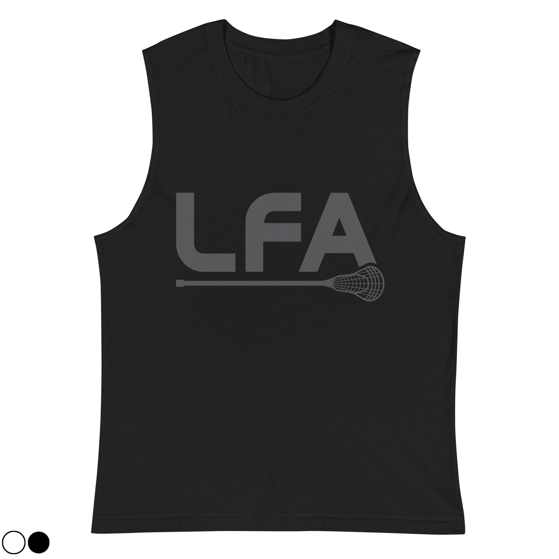 Select black or white in this adult unisex muscle tank featuring the printed LFA lacrosse design. This soft, sleeveless tank is so comfy you're going to want to wear it everywhere. The relaxed fit and low-cut armholes gives it a casual, urban look.