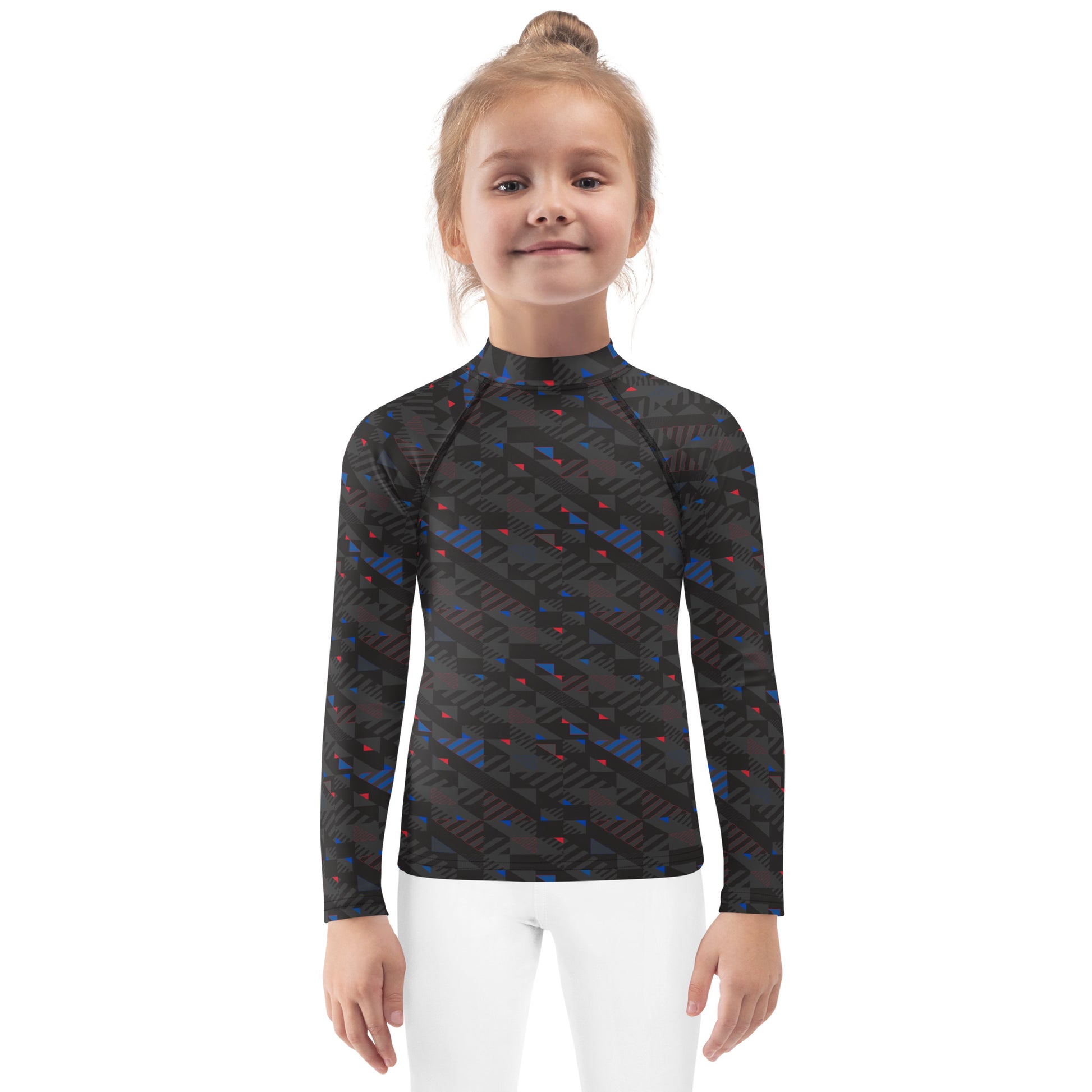 This kid's long-sleeve layering shirt features the all-over Fusz gray pattern in a variety of sizes. With it's sun-protective fabric and long body and sleeves, this light-weight shirt is perfect for layering under their jersey for a little something extra at those cooler games. Need a larger size? Check out our Youth layering shirt with the same pattern.