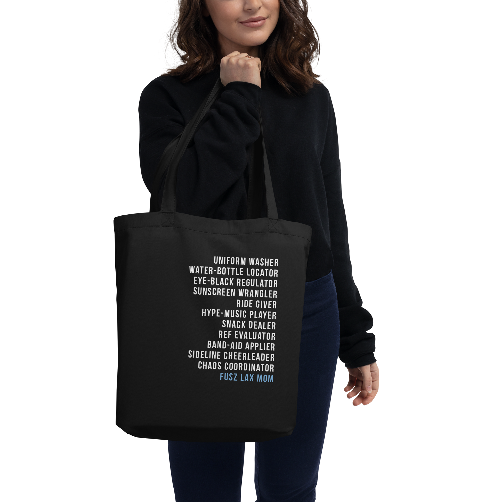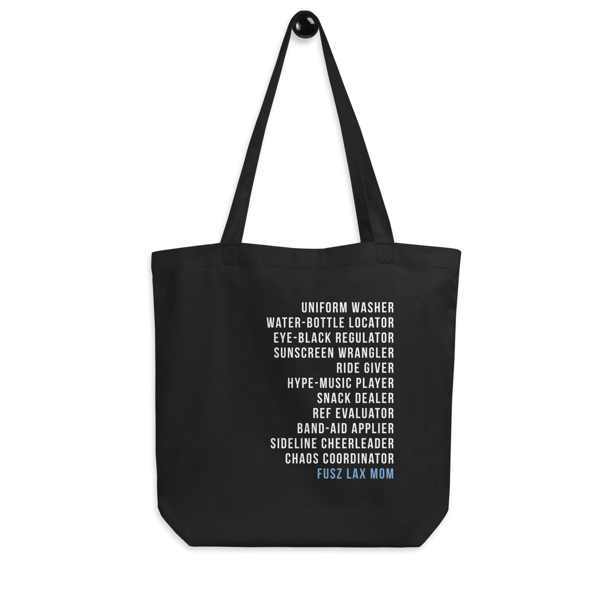 This spacious organic cotton tote bag features a printed list for all of those Fusz lacrosse moms. Fill it up with all the game day essentials—there’s room for everything!