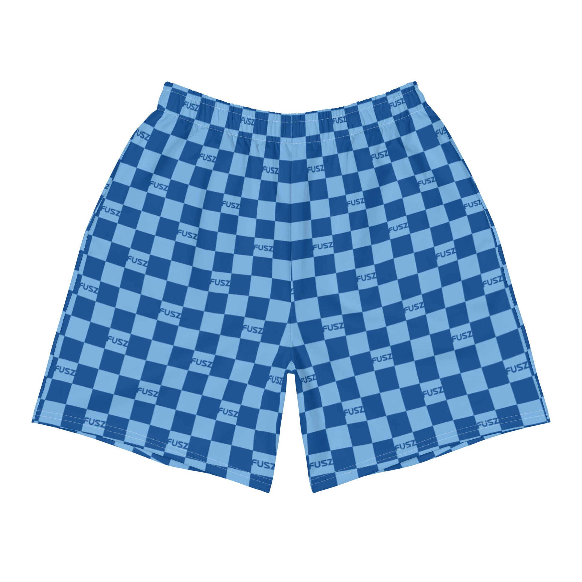 These men's recycled athletic shorts feature the all-over checkered Fusz blue pattern. These shorts are so comfy and made from such a versatile fabric that you won't feel out of place at any sports event. And, of course, they have pockets. Need we say more?