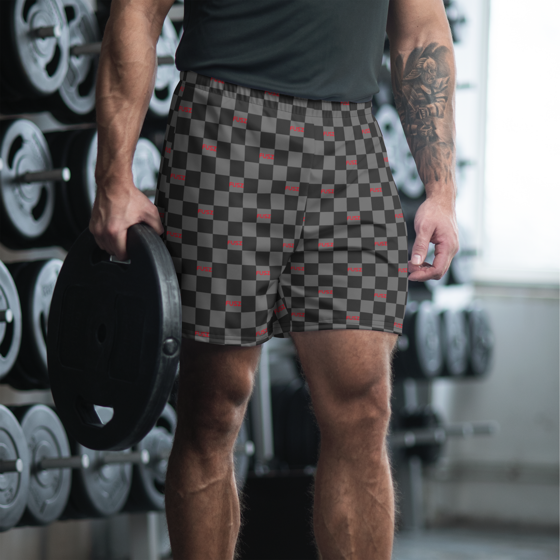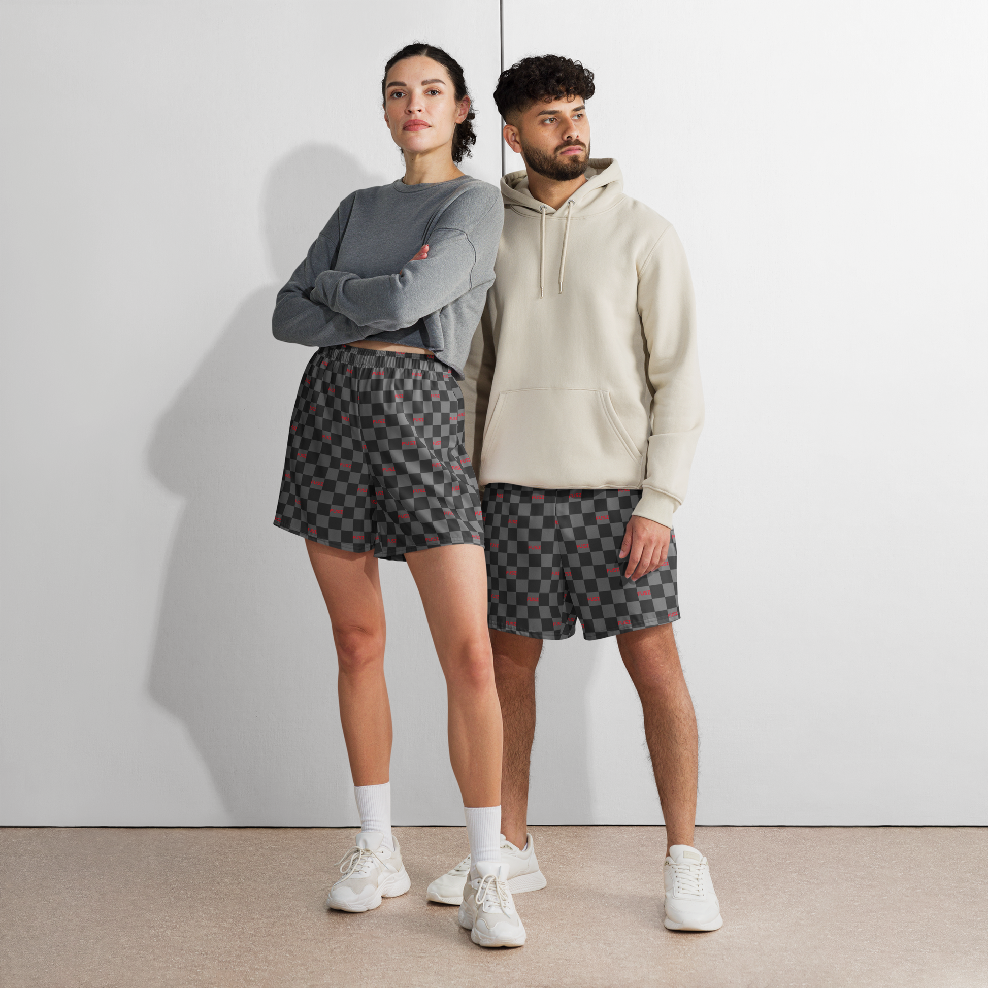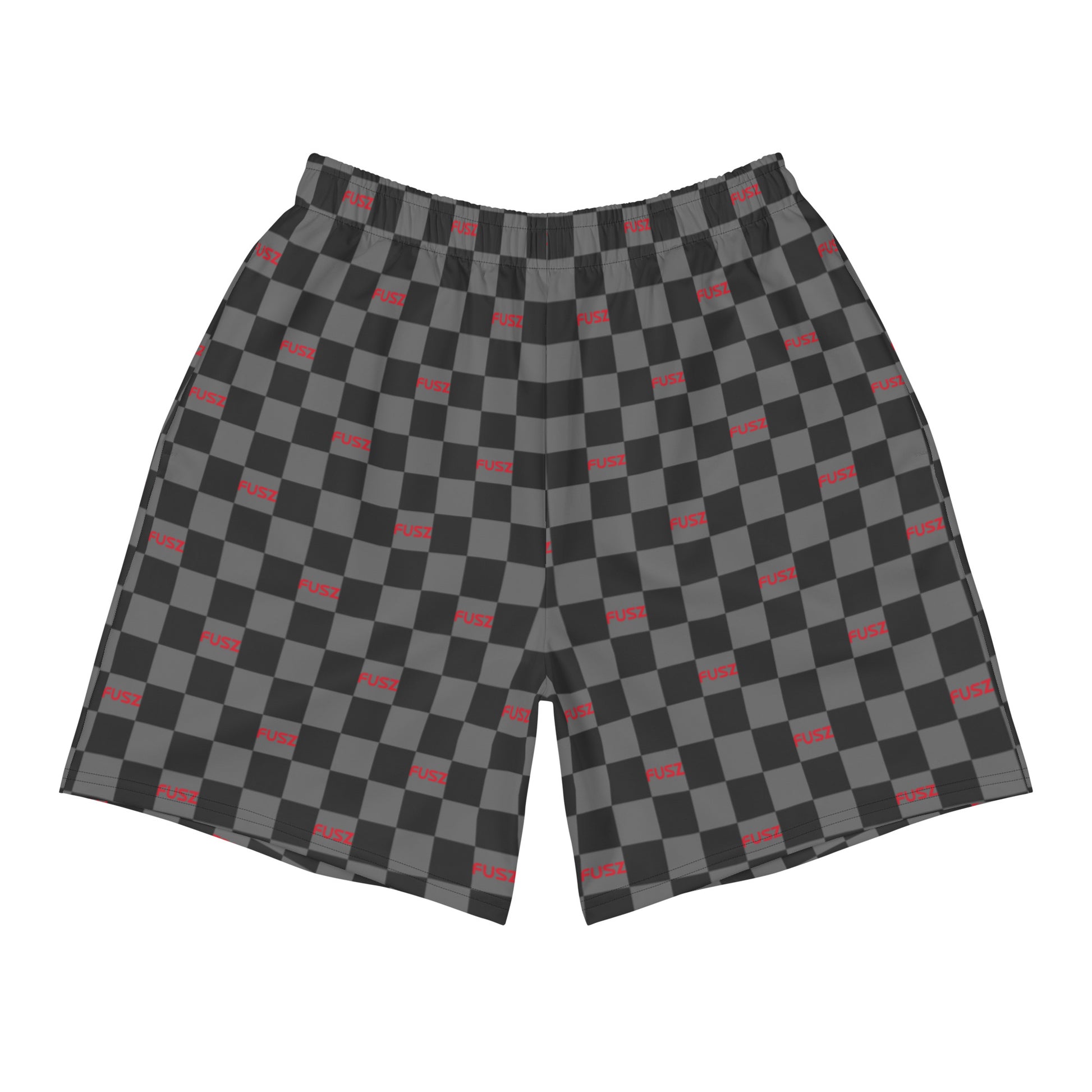 These men's recycled athletic shorts feature the all-over checkered Fusz gray and red pattern. These shorts are so comfy and made from such a versatile fabric that you won't feel out of place at any sports event. And, of course, they have pockets. Need we say more?