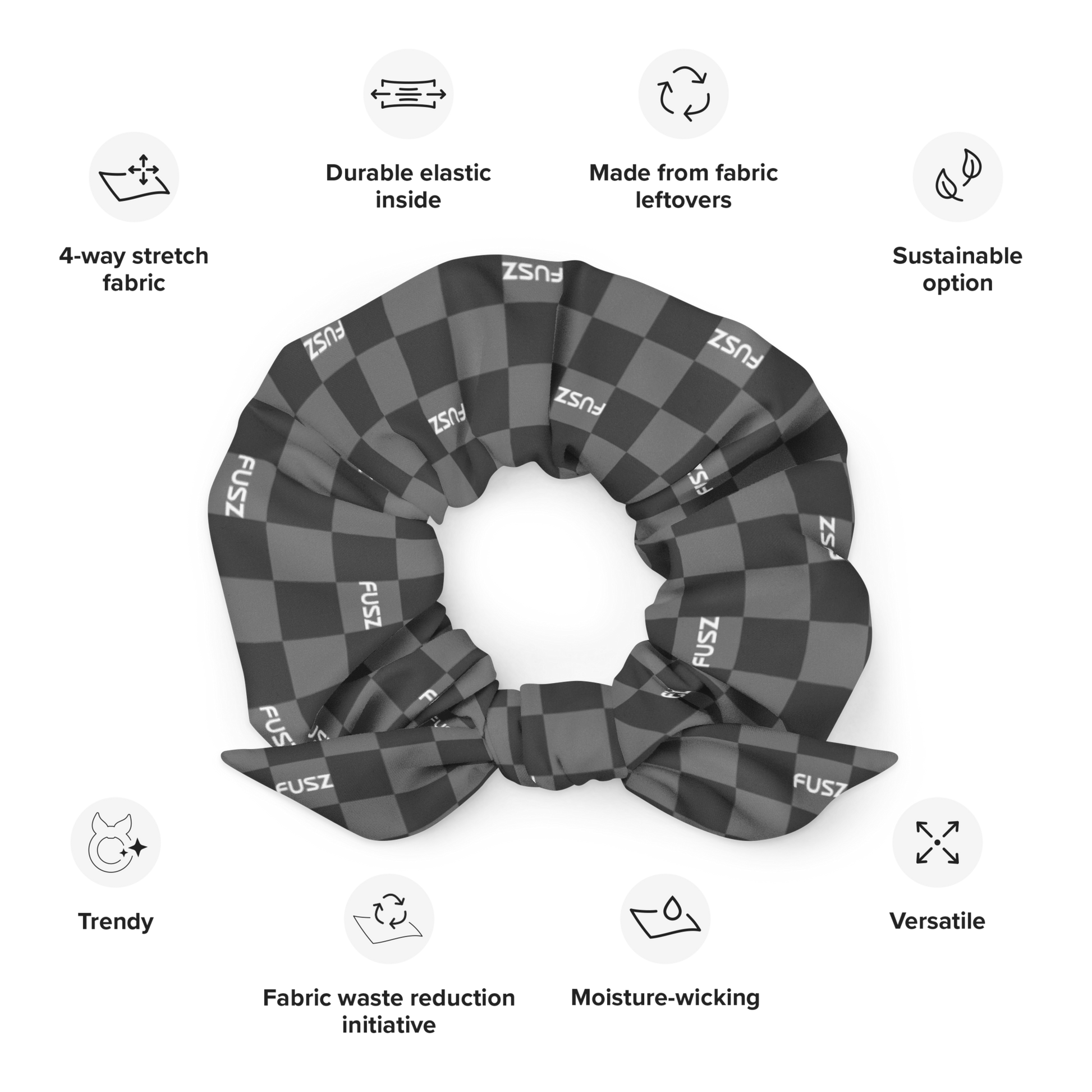 This soft, stretchy scrunchie features the all-over checkered Fusz gray pattern with a removable bow, and adds that extra touch for all of those big games or even your everyday workouts.