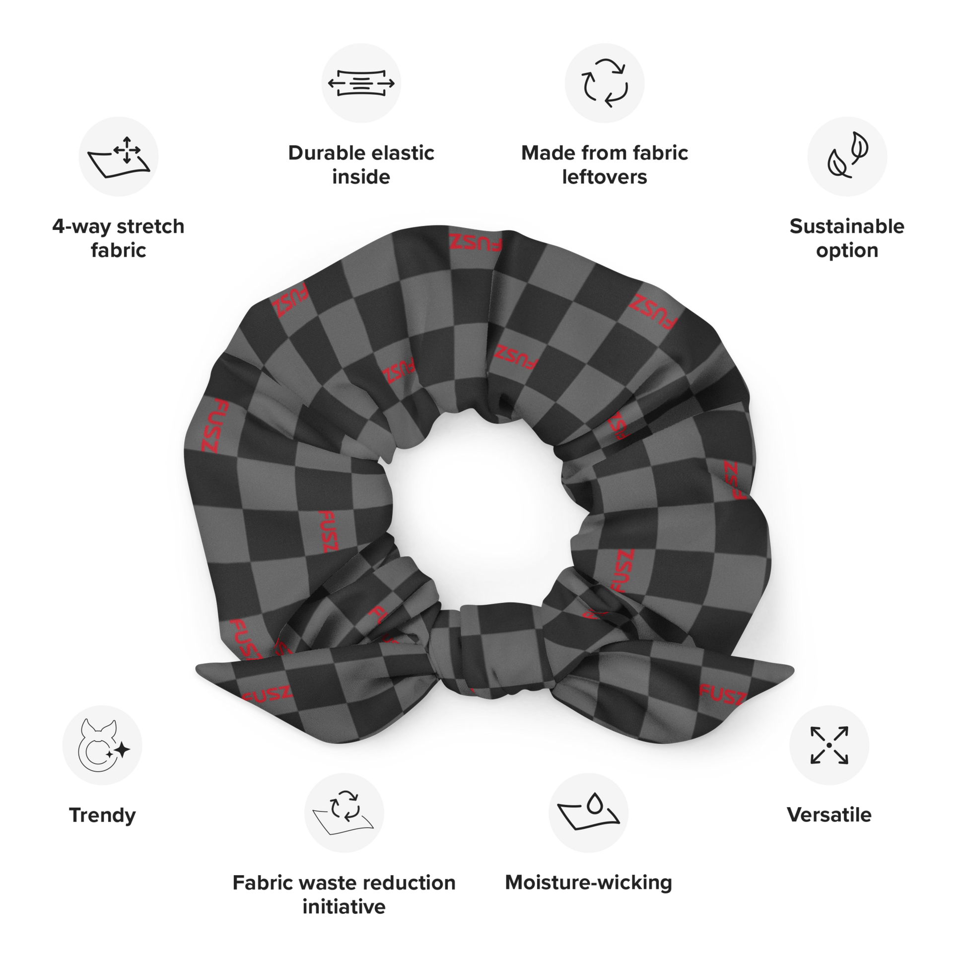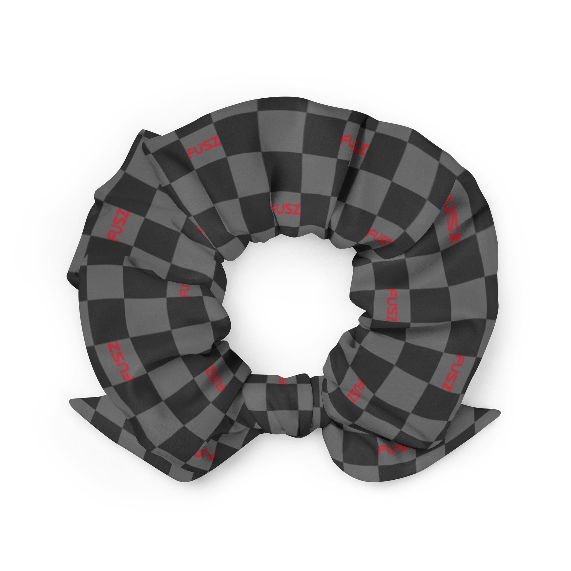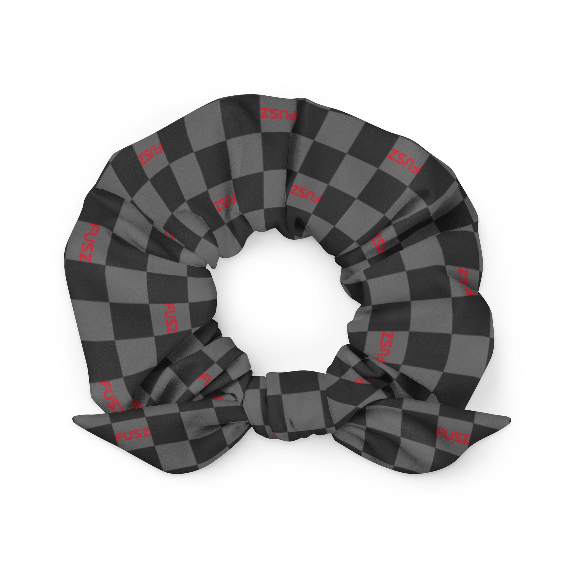 This soft, stretchy scrunchie features the all-over checkered Fusz gray and red pattern with a removable bow, and adds that extra touch for all of those big games or even your everyday workouts.