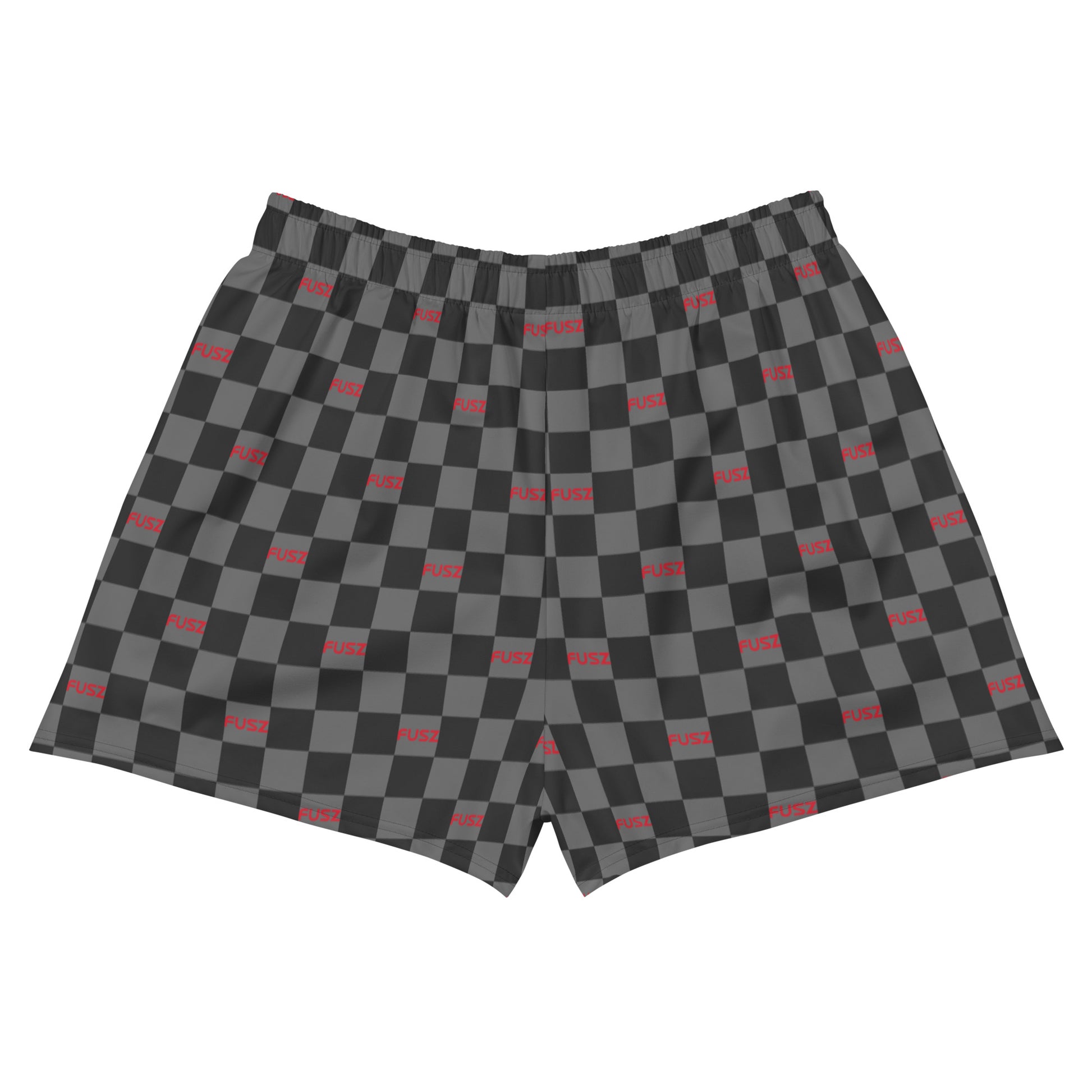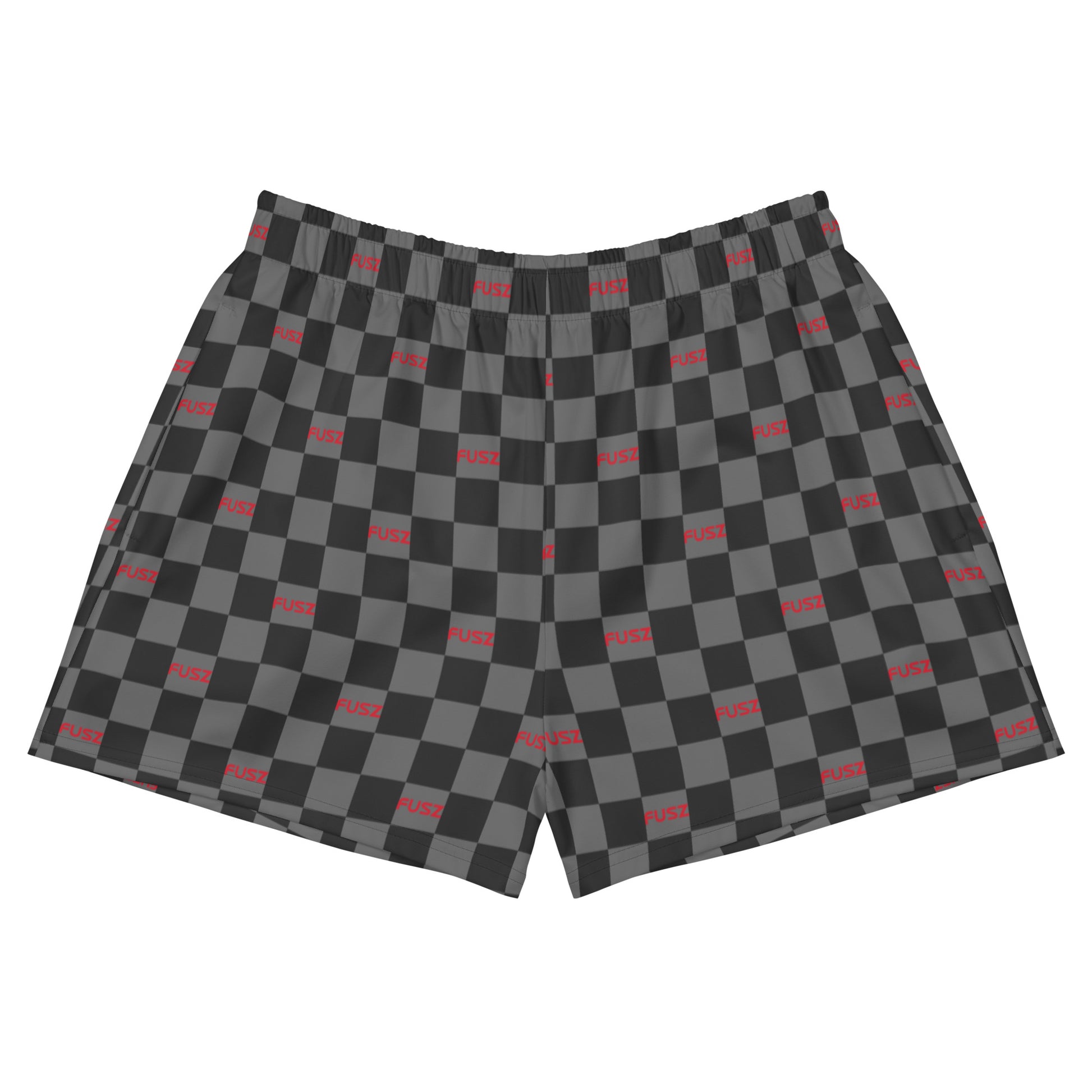 Women's Athletic Shorts - Checkered Fusz Gray and Red