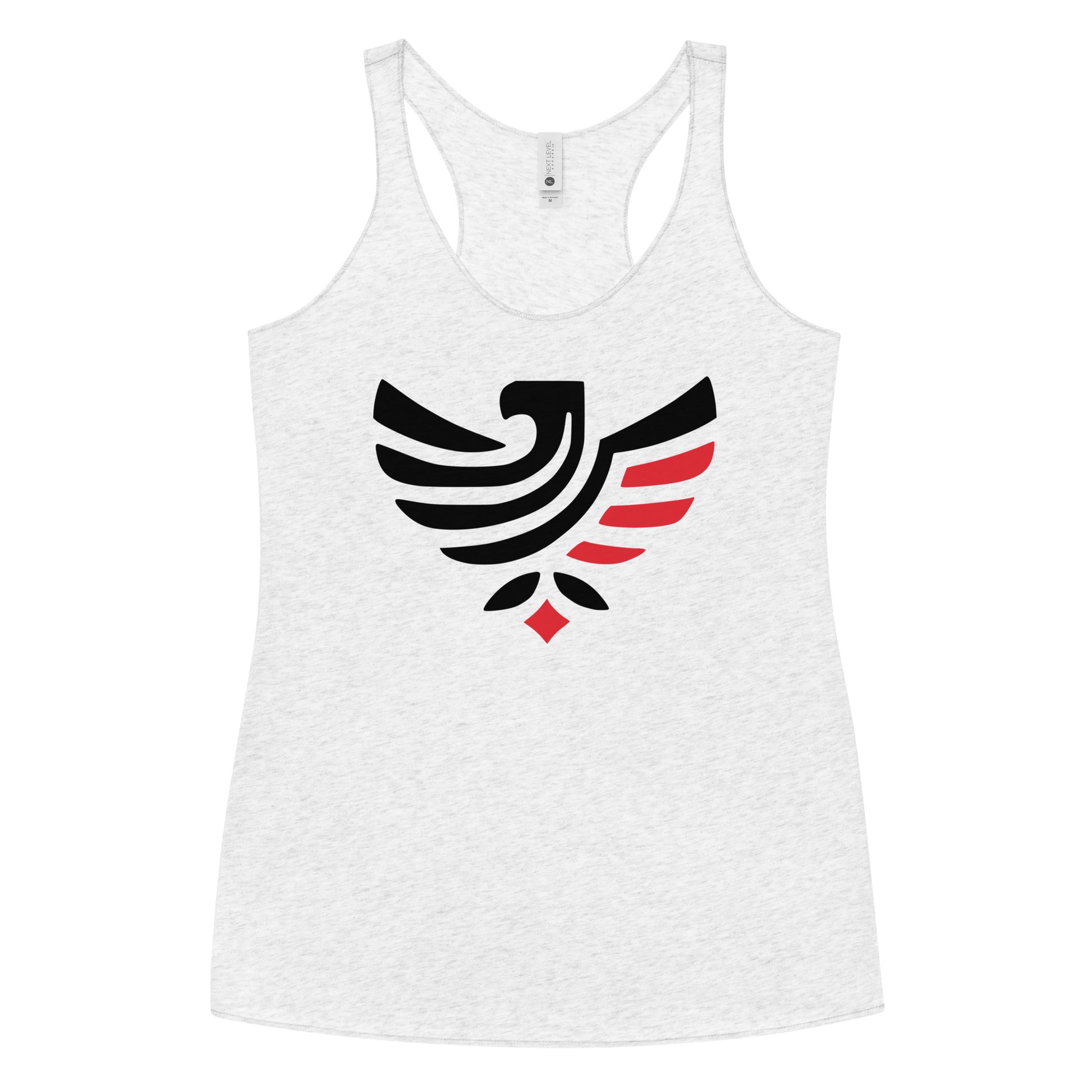 This women's racerback tank features the printed Hawk graphic. This racerback tank is soft, lightweight and form-fitting with a flattering cut and raw edge seams for an edgy touch.