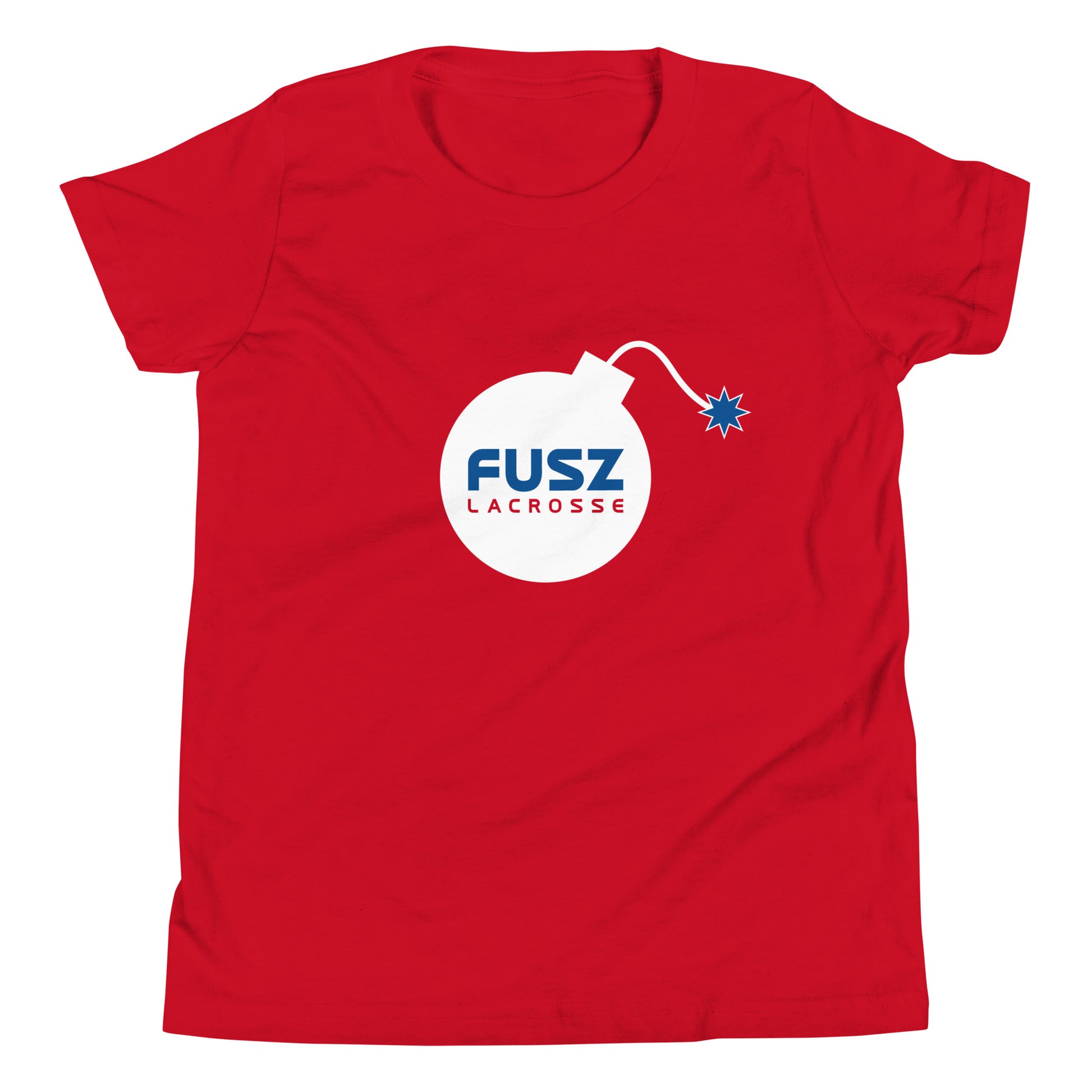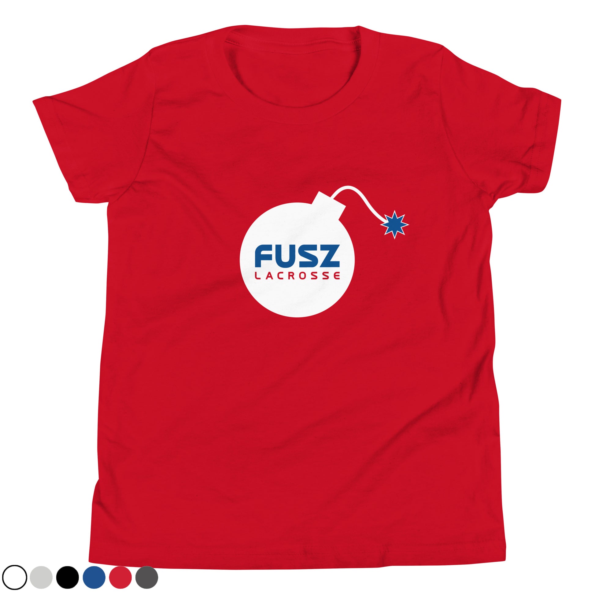 Select from a variety of colors with this youth unisex t-shirt featuring the Fusz Lacrosse bomb design printed on the front. This light, soft tee is bound to become a favorite in any kid's wardrobe!