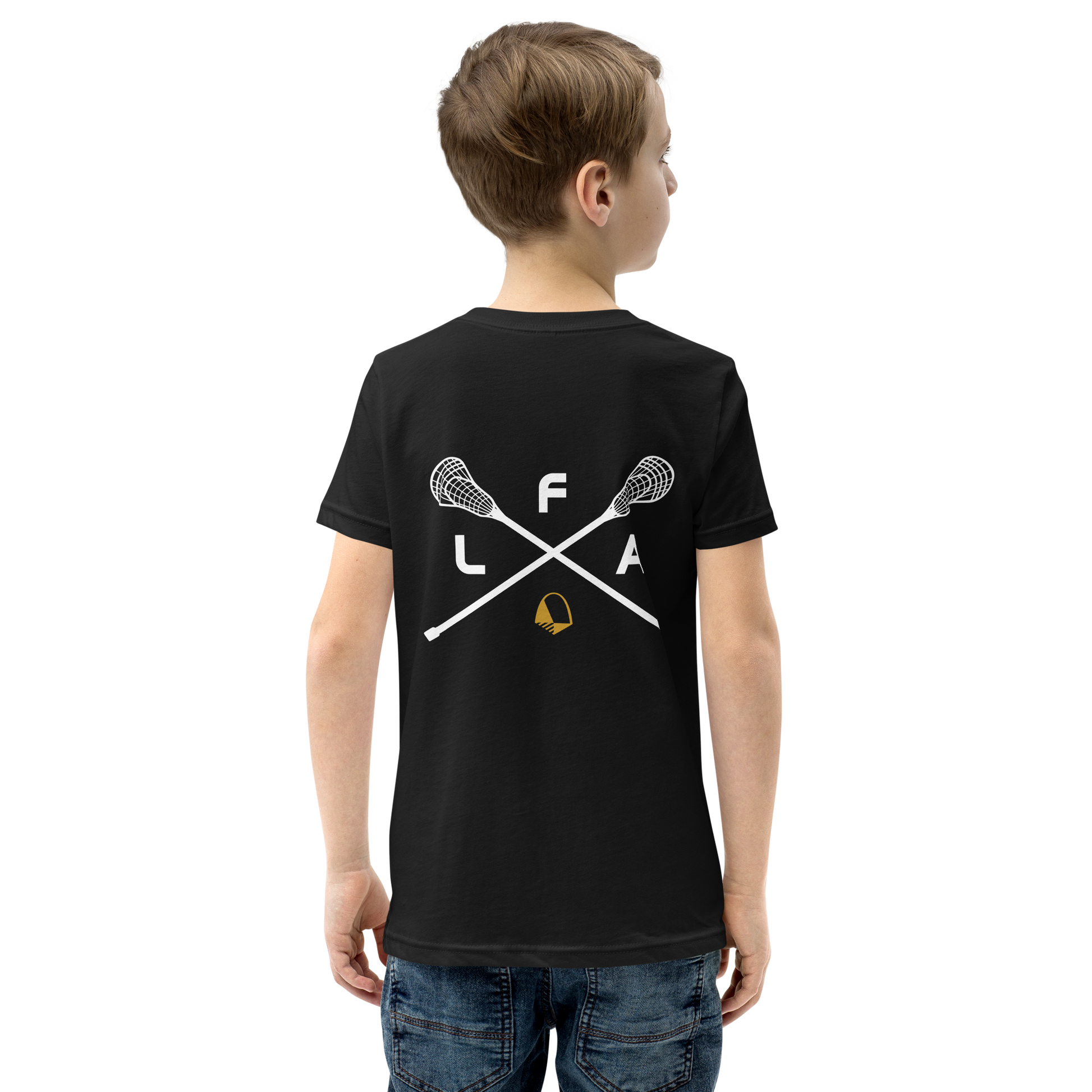 Select from a variety of colors with this youth unisex t-shirt featuring the LFA lacrosse sticks design printed on the back. This light, soft tee is bound to become a favorite in any kid's wardrobe!