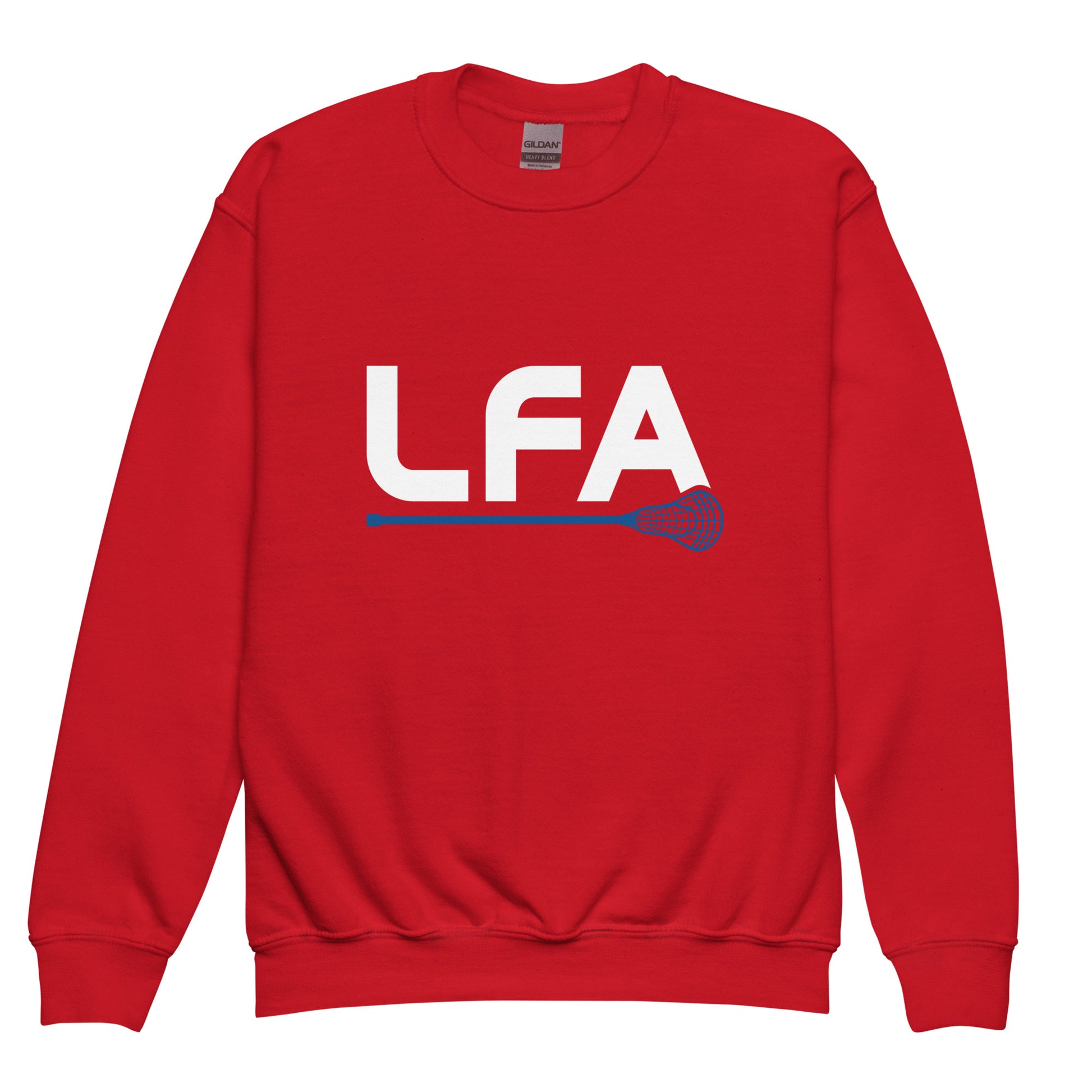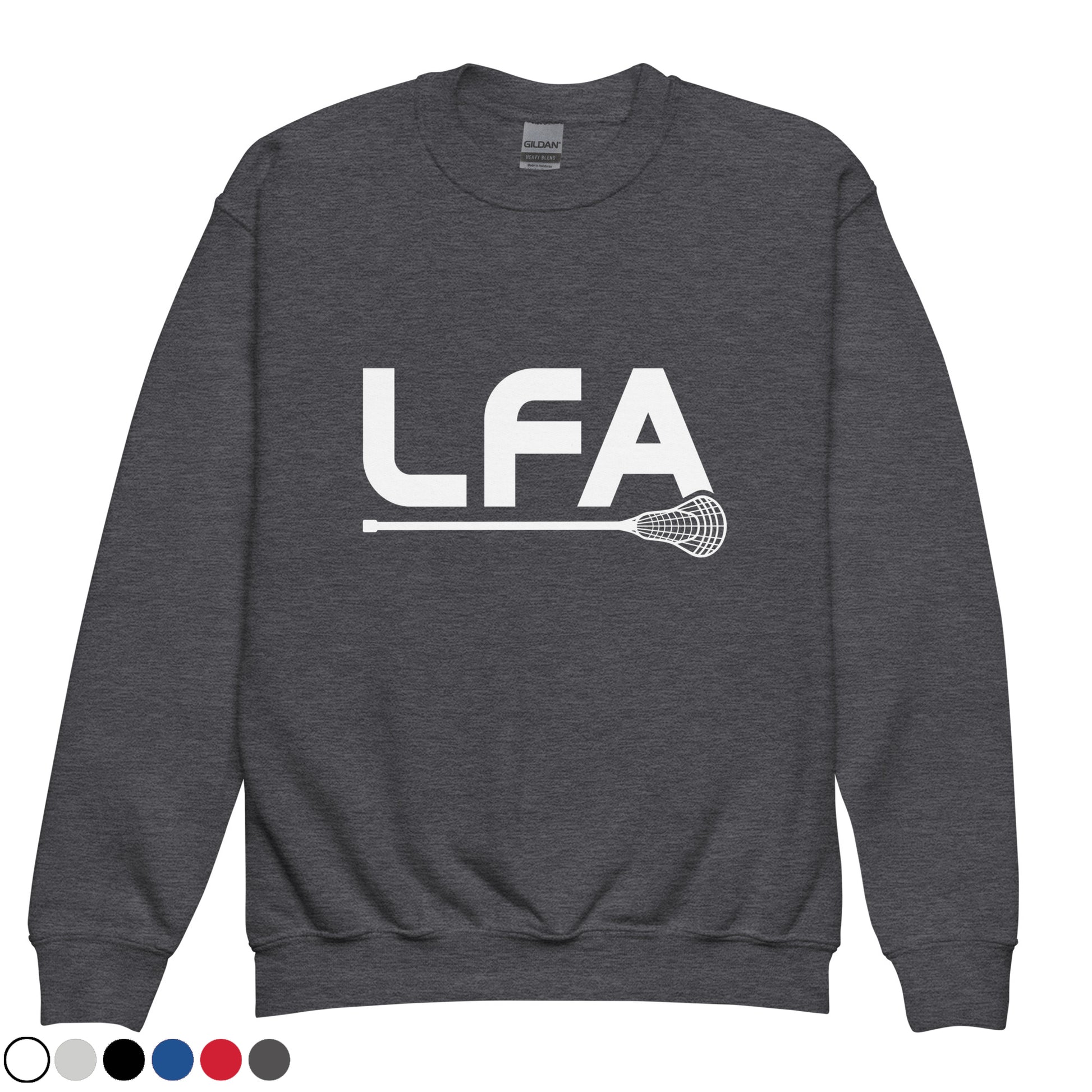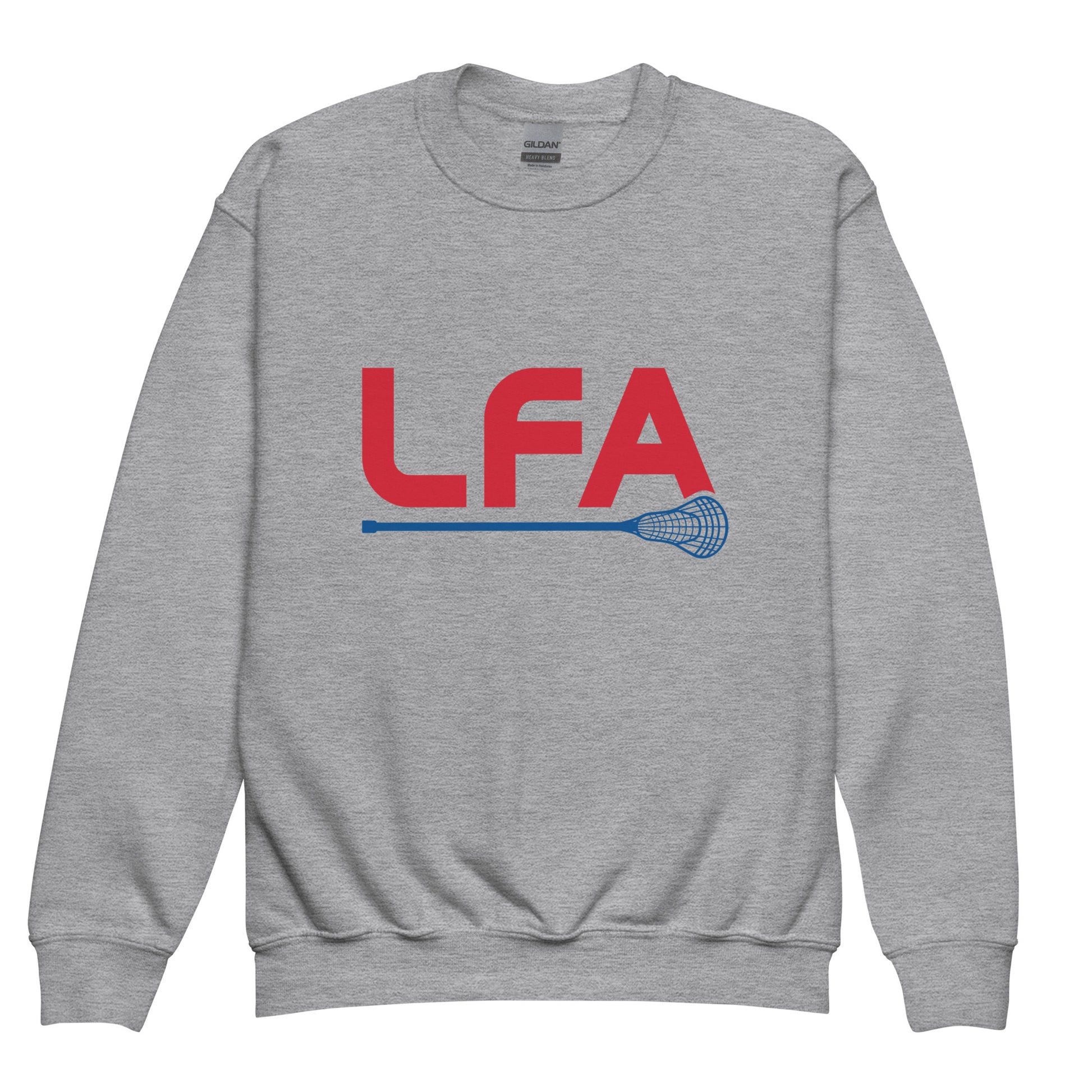 Select from a variety of colors with this youth unisex crew-neck sweatshirt featuring the LFA lacrosse stick design printed on the front. Cozy and cool, this sweatshirt is designed for any sport and every adventure.