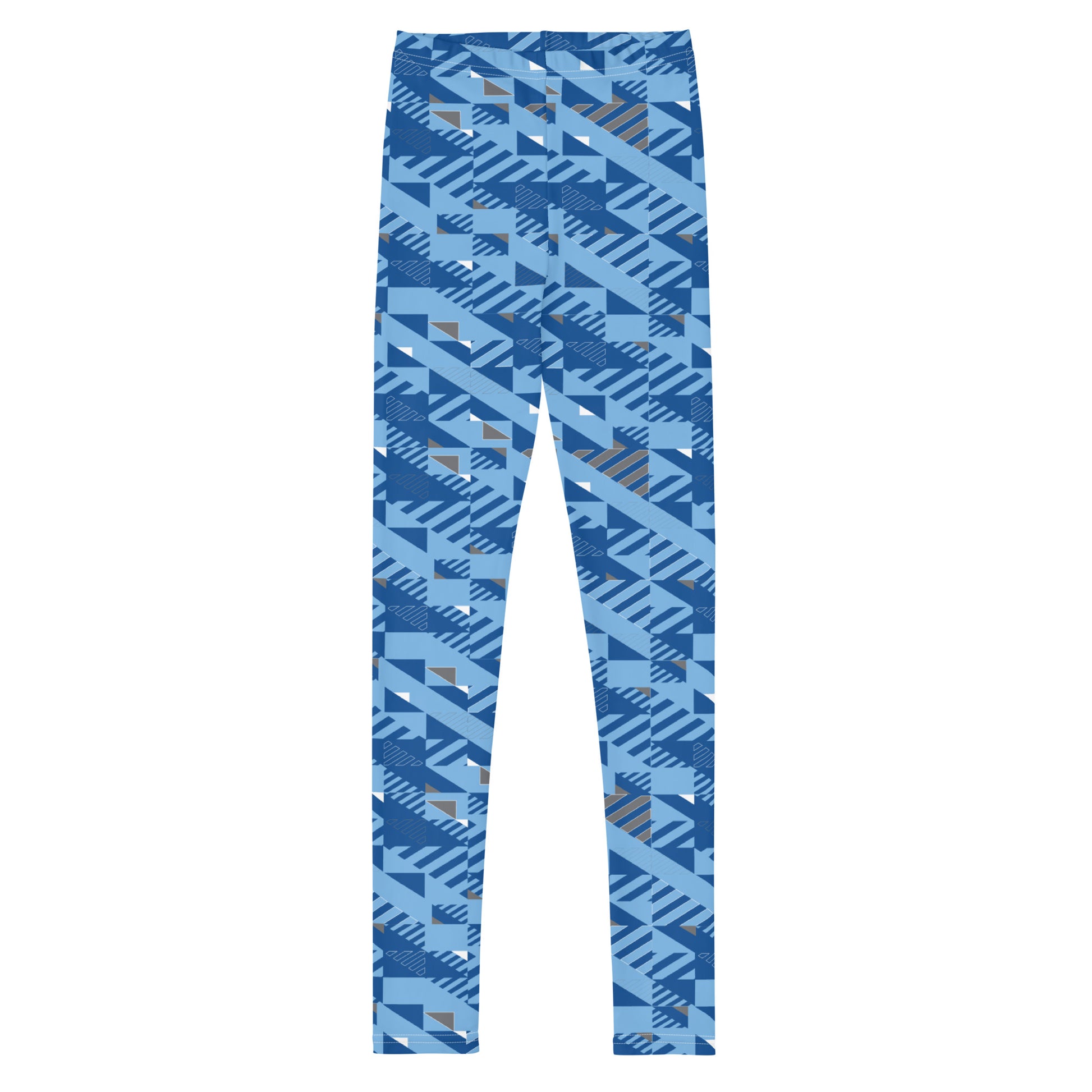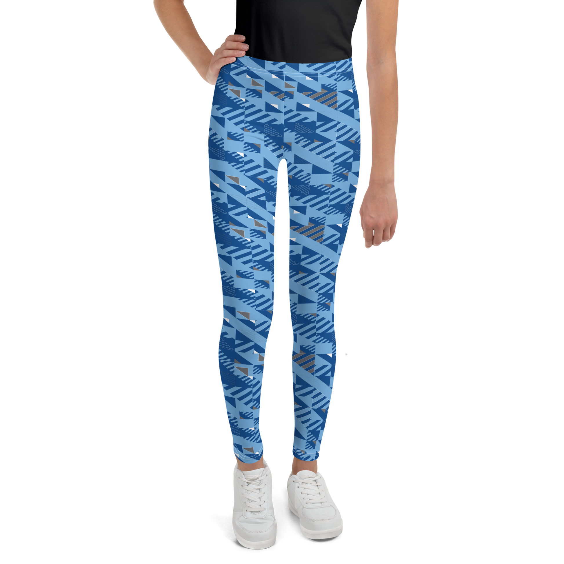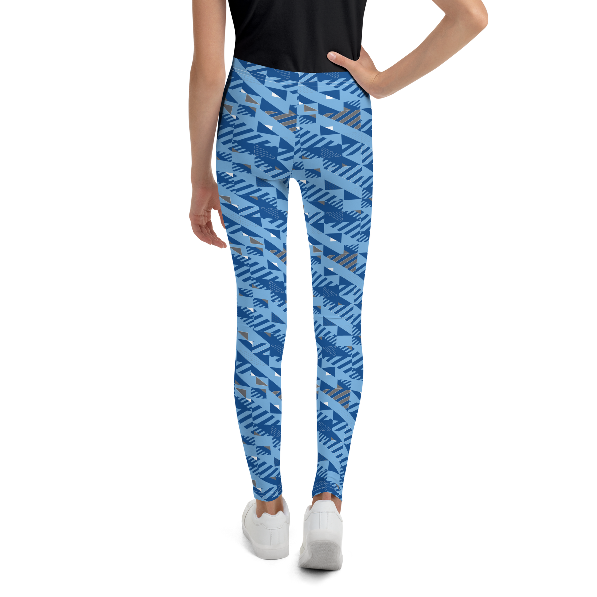 These youth leggings feature the all-over Fusz blue pattern in a variety of sizes. These soft leggings with an elastic waistband are perfect for active kids who are always on the move. Need a smaller size? Check out our Kid's leggings with the same pattern.