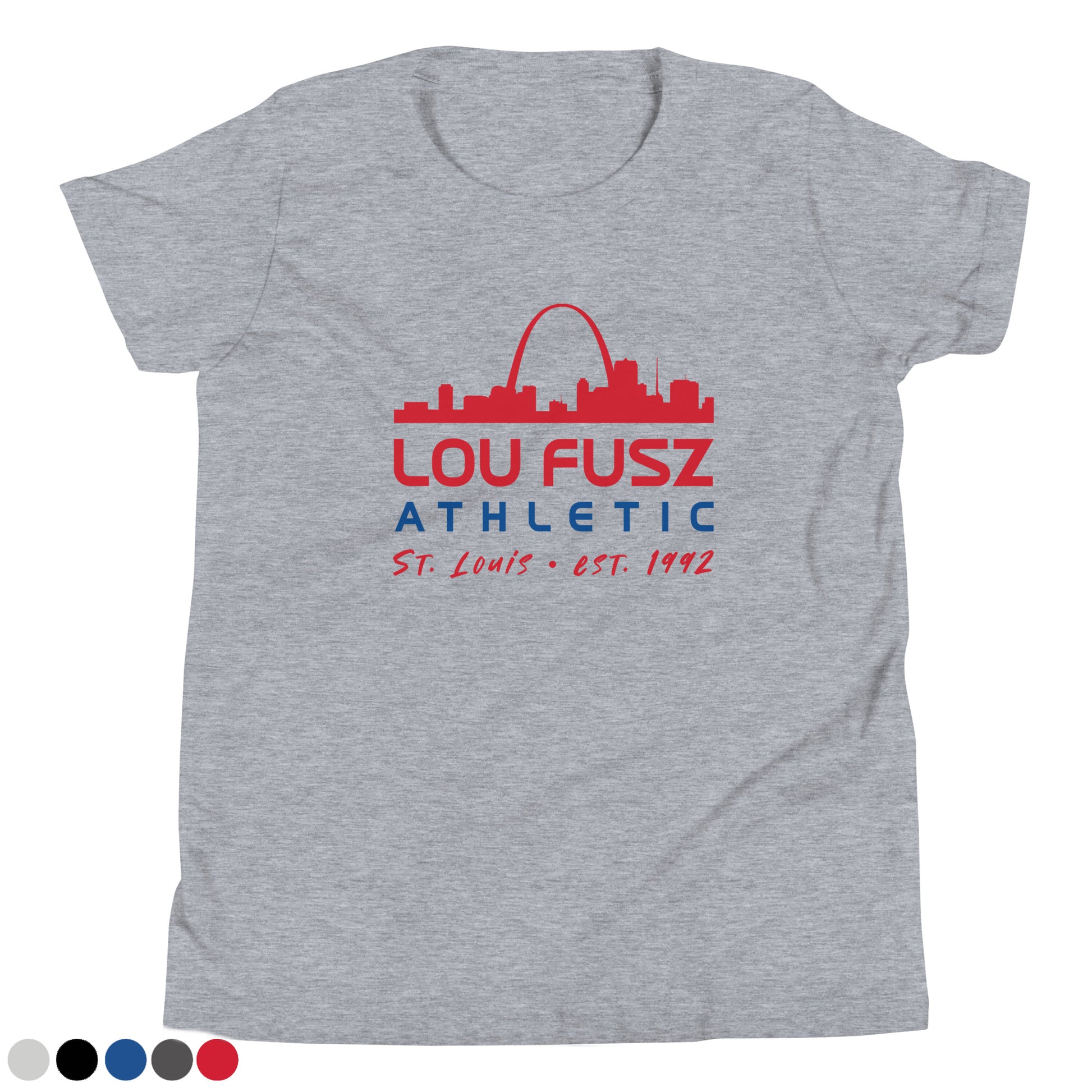 Select from several colors with this youth unisex t-shirt featuring the Lou Fusz Athletic Skyline graphic printed on the front. This light, soft tee is bound to become a favorite in any kid's wardrobe!