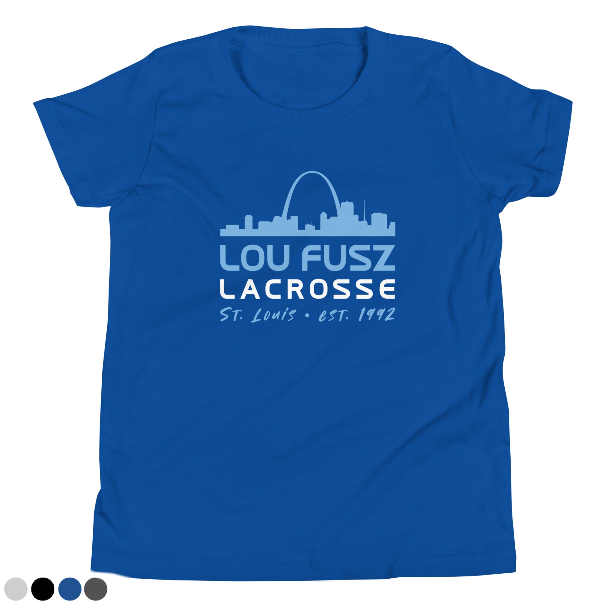 Select from several colors with this youth unisex t-shirt featuring the Lou Fusz Lacrosse Skyline graphic printed on the front. This light, soft tee is bound to become a favorite in any kid's wardrobe!